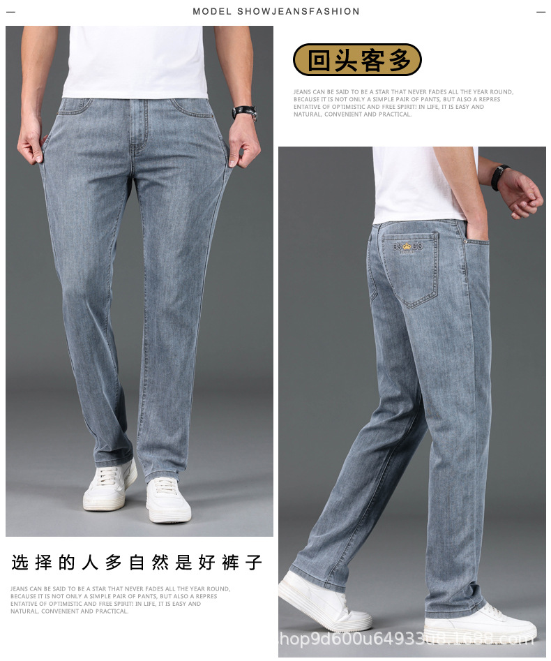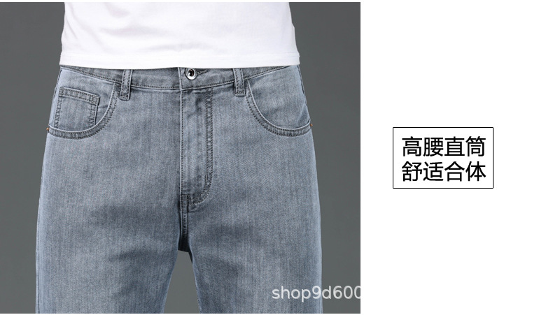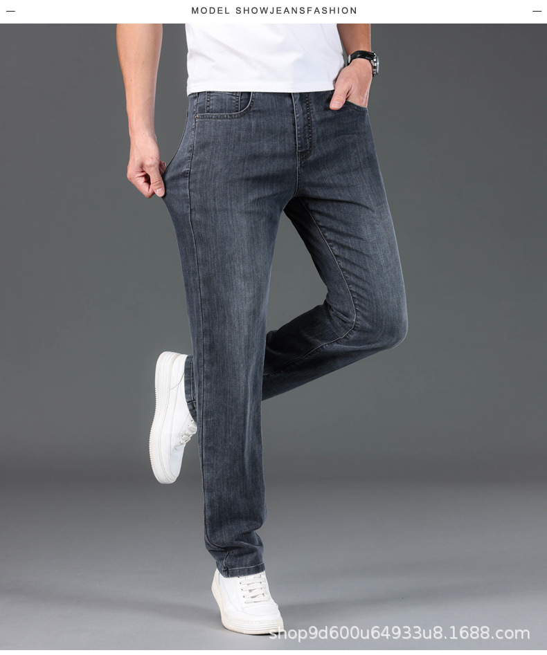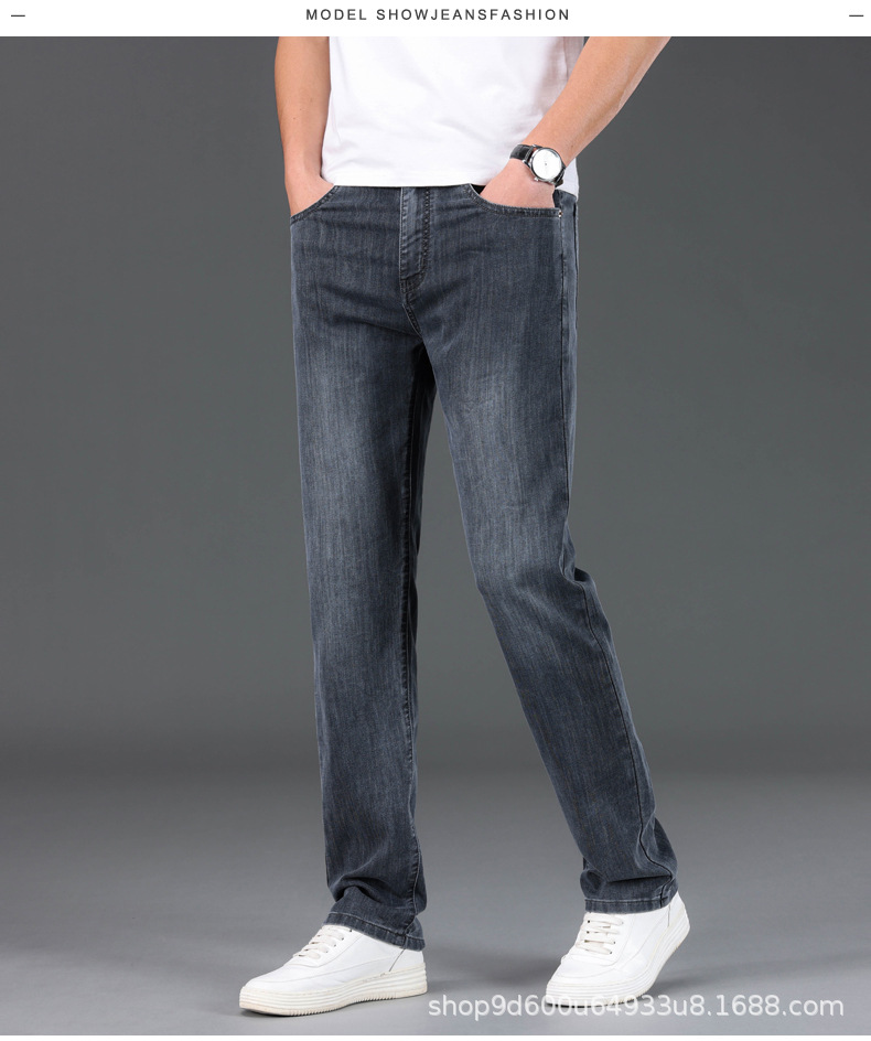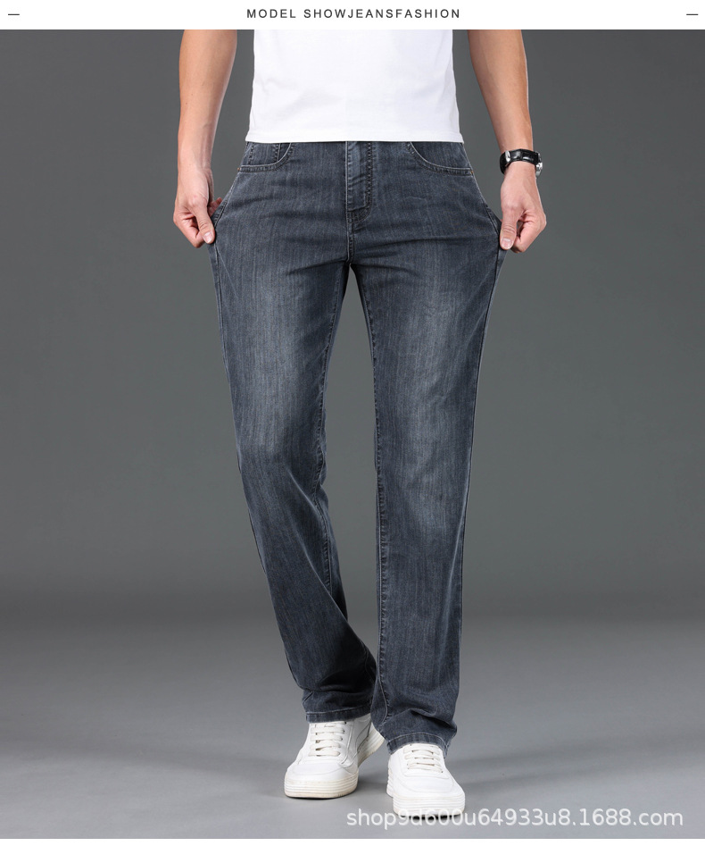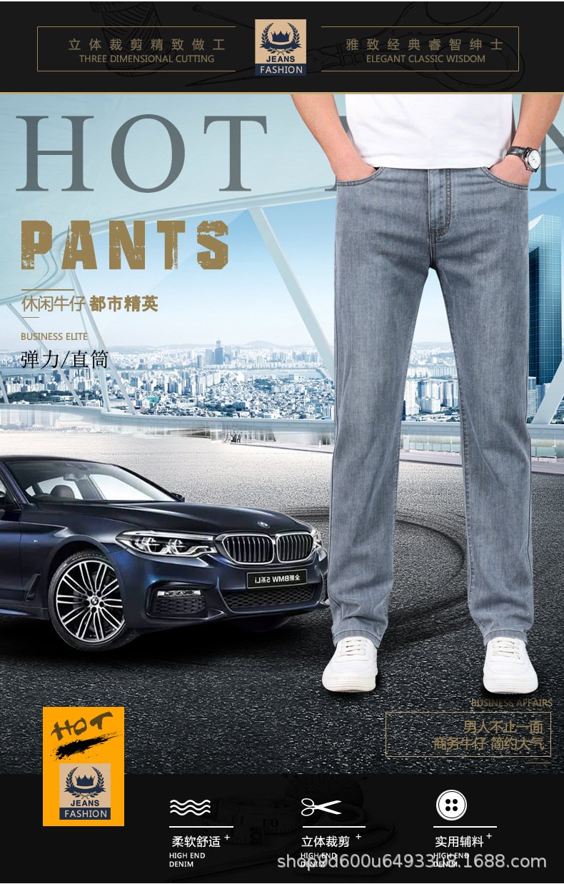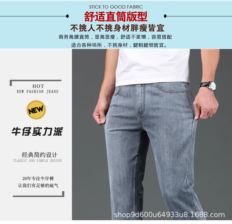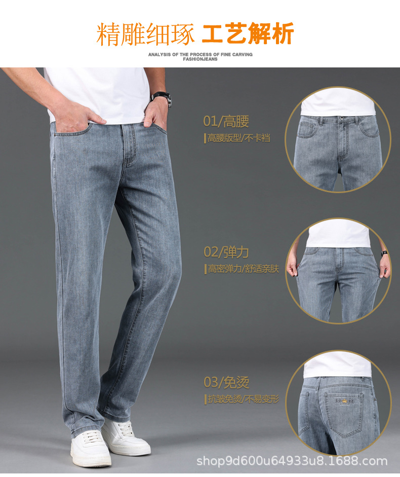 새로운 청바지 남자의 여름 얇은 편안한 부드러운 하이 웨이스트 느슨한 스트레이트 스트레치 비즈니스 중년 남성 바지스토어 가기