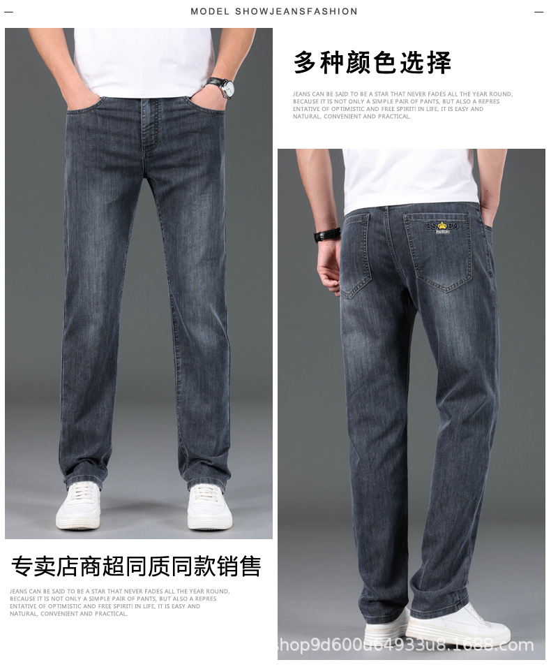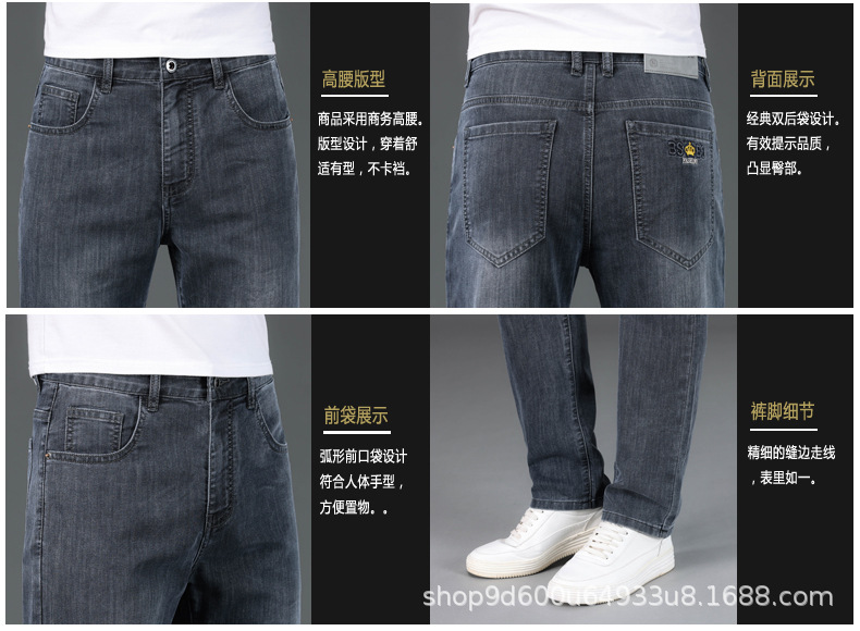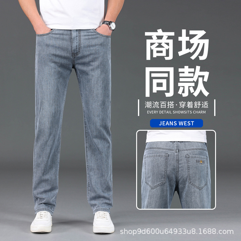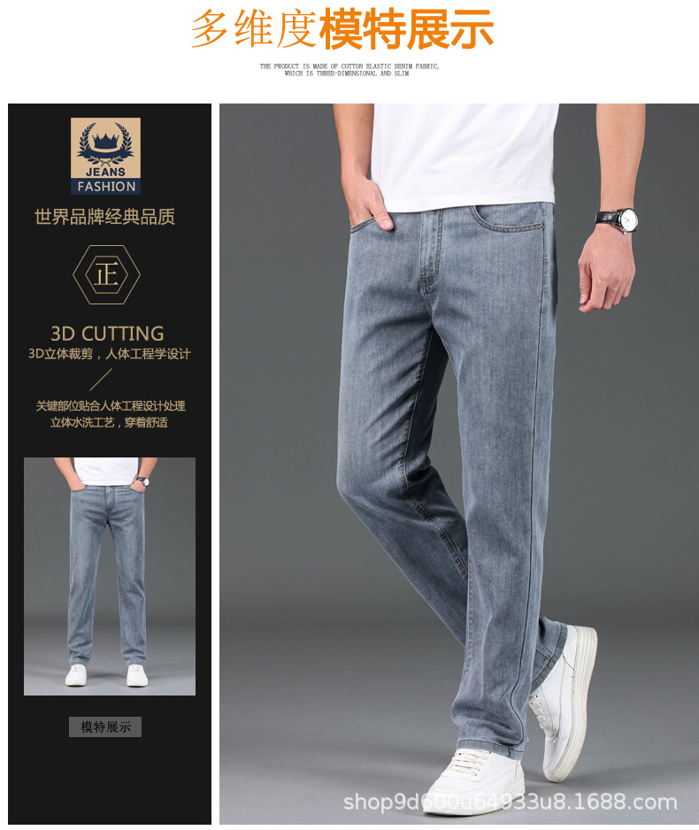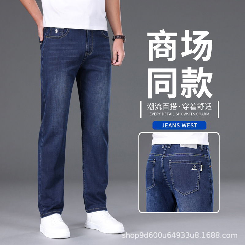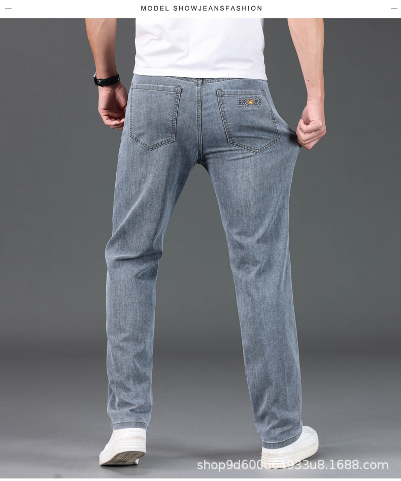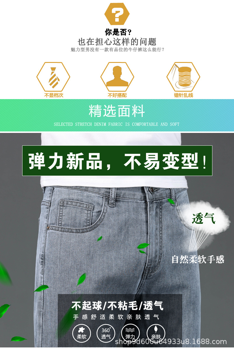 새로운 청바지 남자의 여름 얇은 편안한 부드러운 하이 웨이스트 느슨한 스트레이트 스트레치 비즈니스 중년 남성 바지스토어 가기