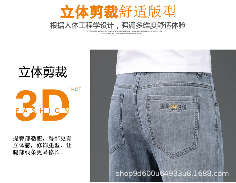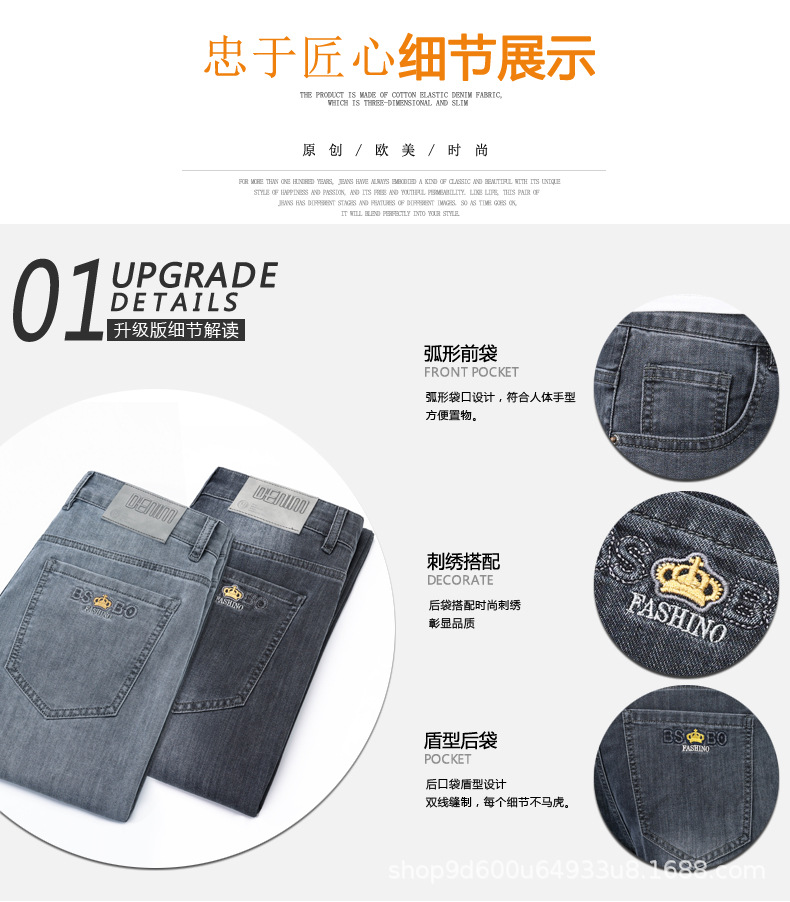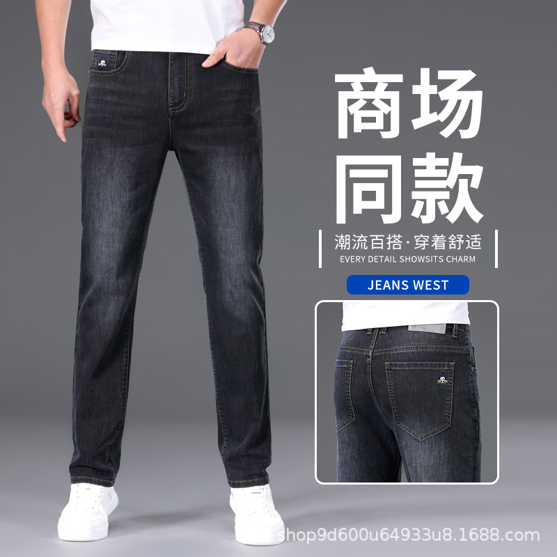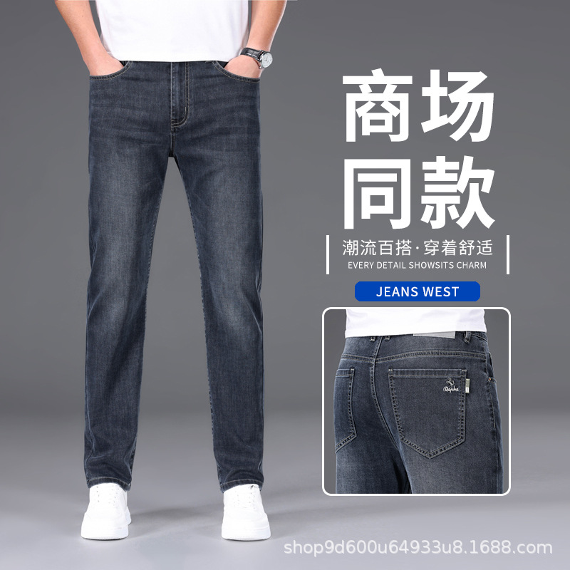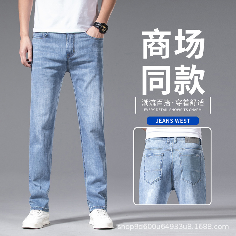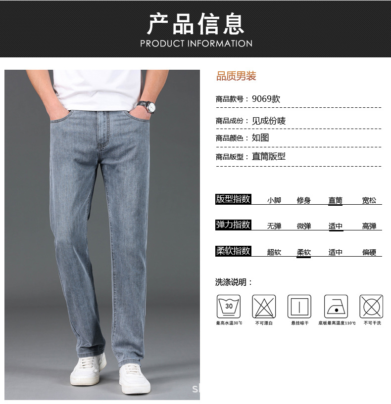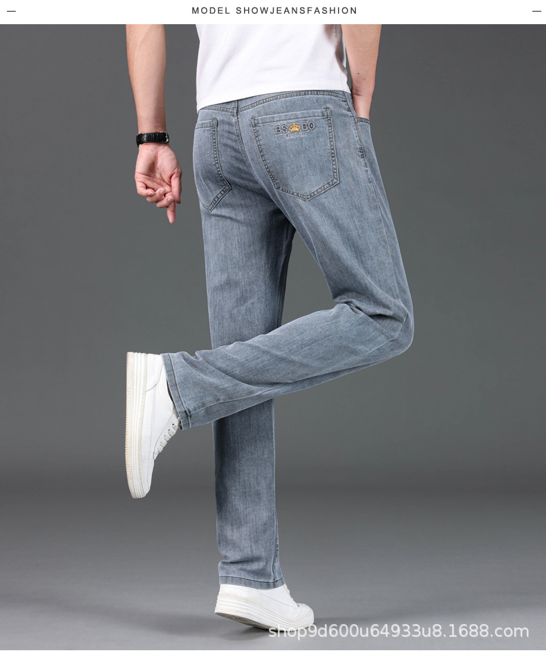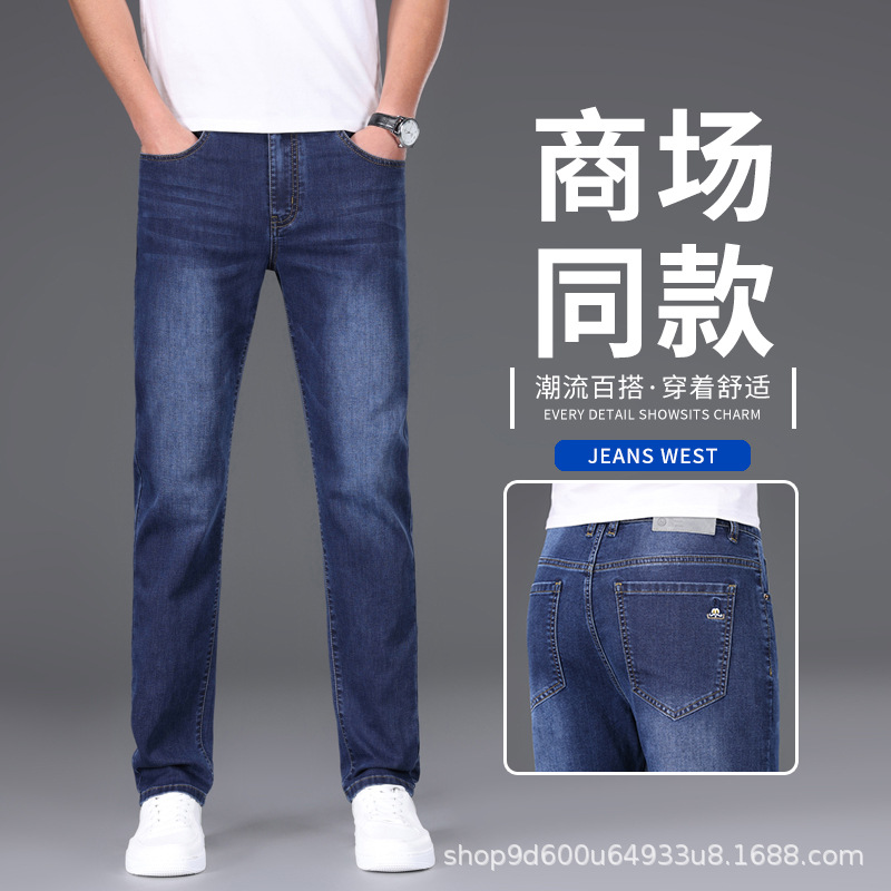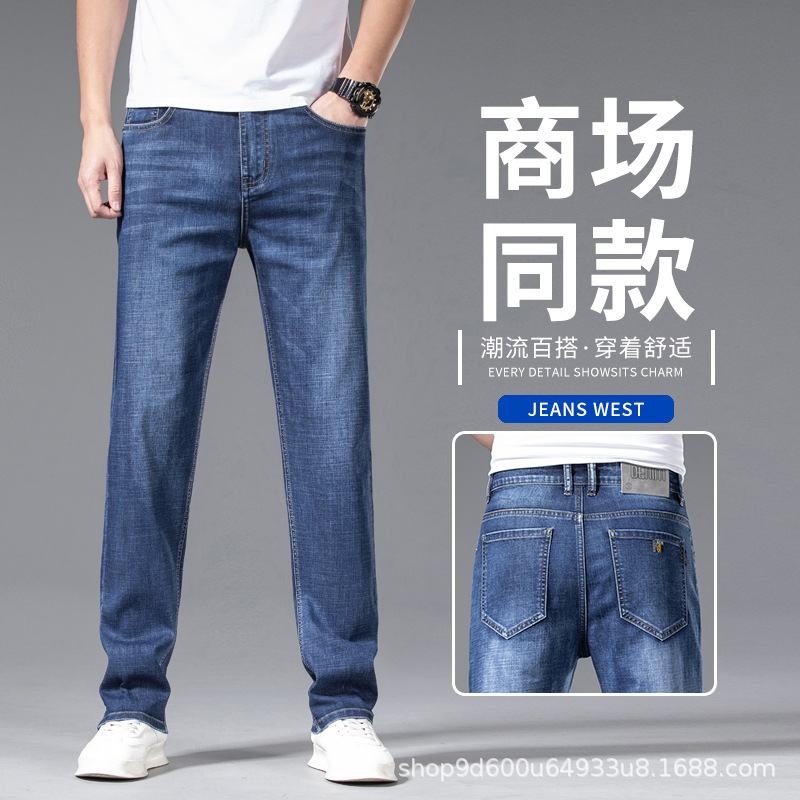 새로운 청바지 남자의 여름 얇은 편안한 부드러운 하이 웨이스트 느슨한 스트레이트 스트레치 비즈니스 중년 남성 바지스토어 가기