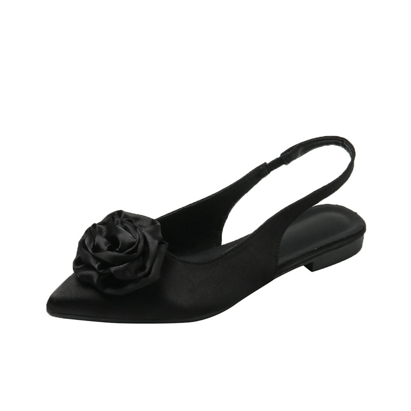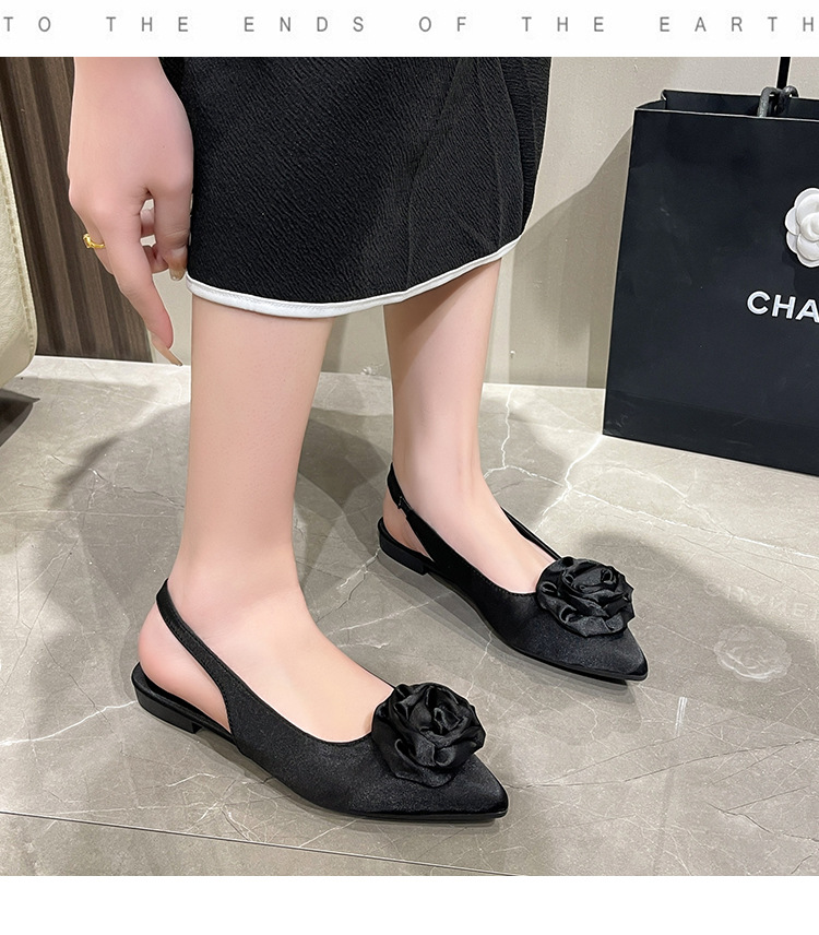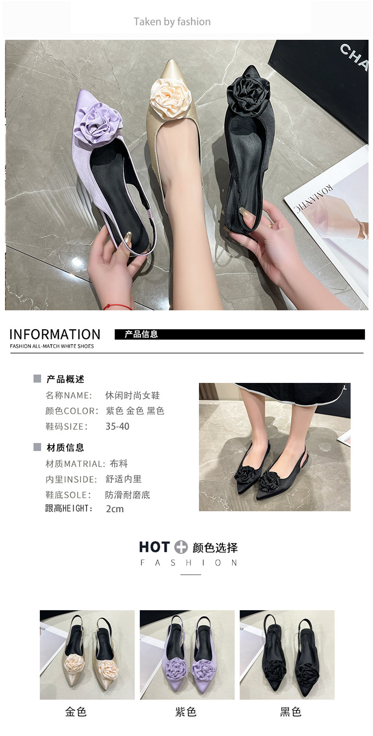 샌들 여성의 2024 년 봄과 여름 새로운 헤어 얕은 꽃 장식 플랫 슈즈 로우 힐 스웨이드 프렌치 포인트 발가락 여성 신발스토어 가기