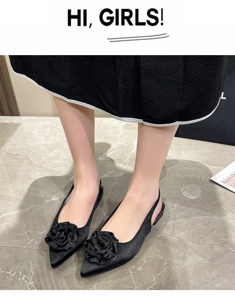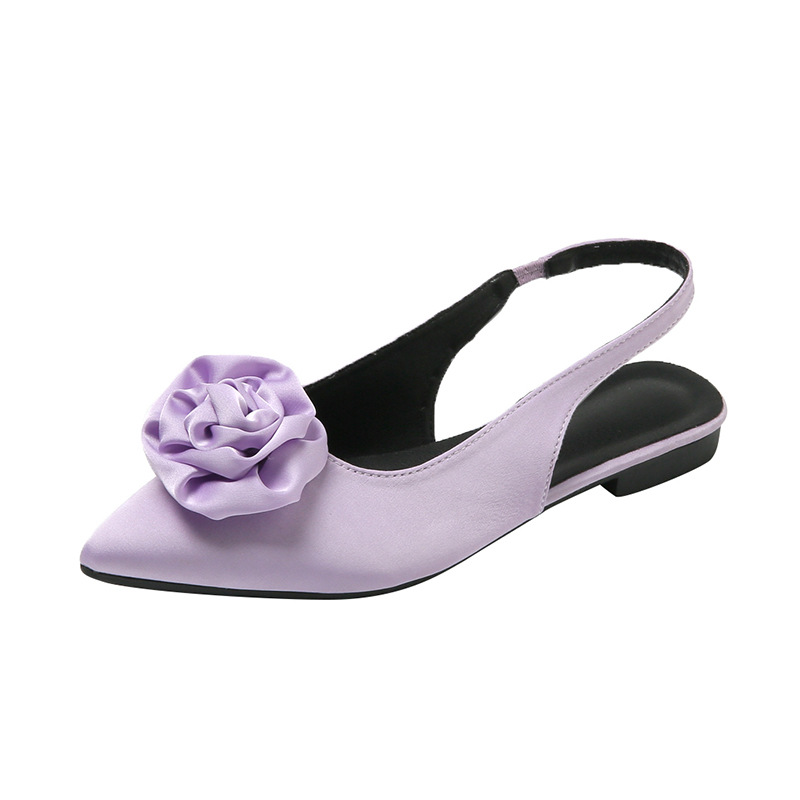 샌들 여성의 2024 년 봄과 여름 새로운 헤어 얕은 꽃 장식 플랫 슈즈 로우 힐 스웨이드 프렌치 포인트 발가락 여성 신발