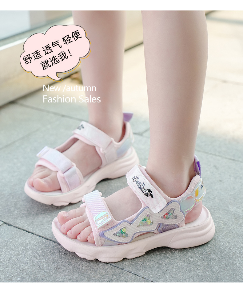 여자 스포츠 샌들 2025 여름 새로운 중대형 어린이 신발 부드러운 바닥 캐주얼 여자 해변 신발 도매스토어 가기