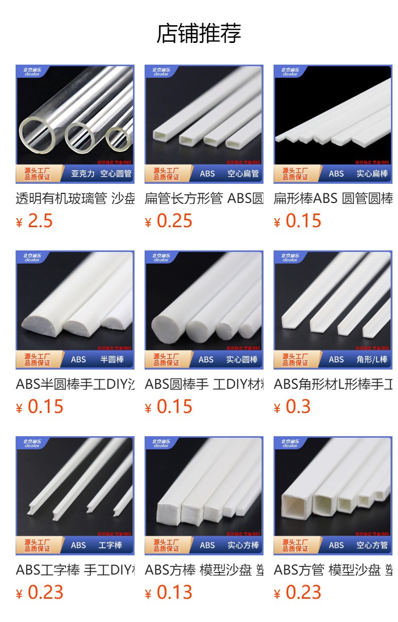 ABS 둥근 막대 수제 DIY 재료 모래 테이블 모델 튜브 소형 건물 모델 재료 플라스틱 단단한 원형 튜브스토어 가기