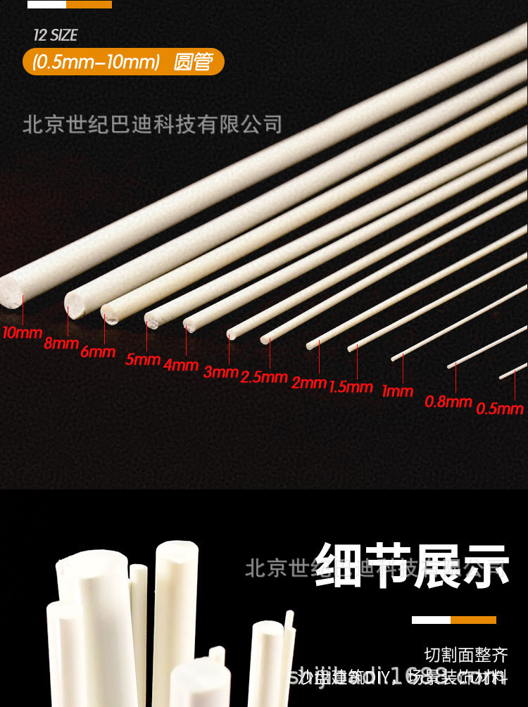 ABS 둥근 막대 수제 DIY 재료 모래 테이블 모델 튜브 소형 건물 모델 재료 플라스틱 단단한 원형 튜브