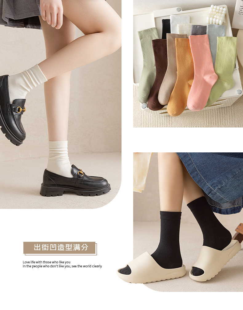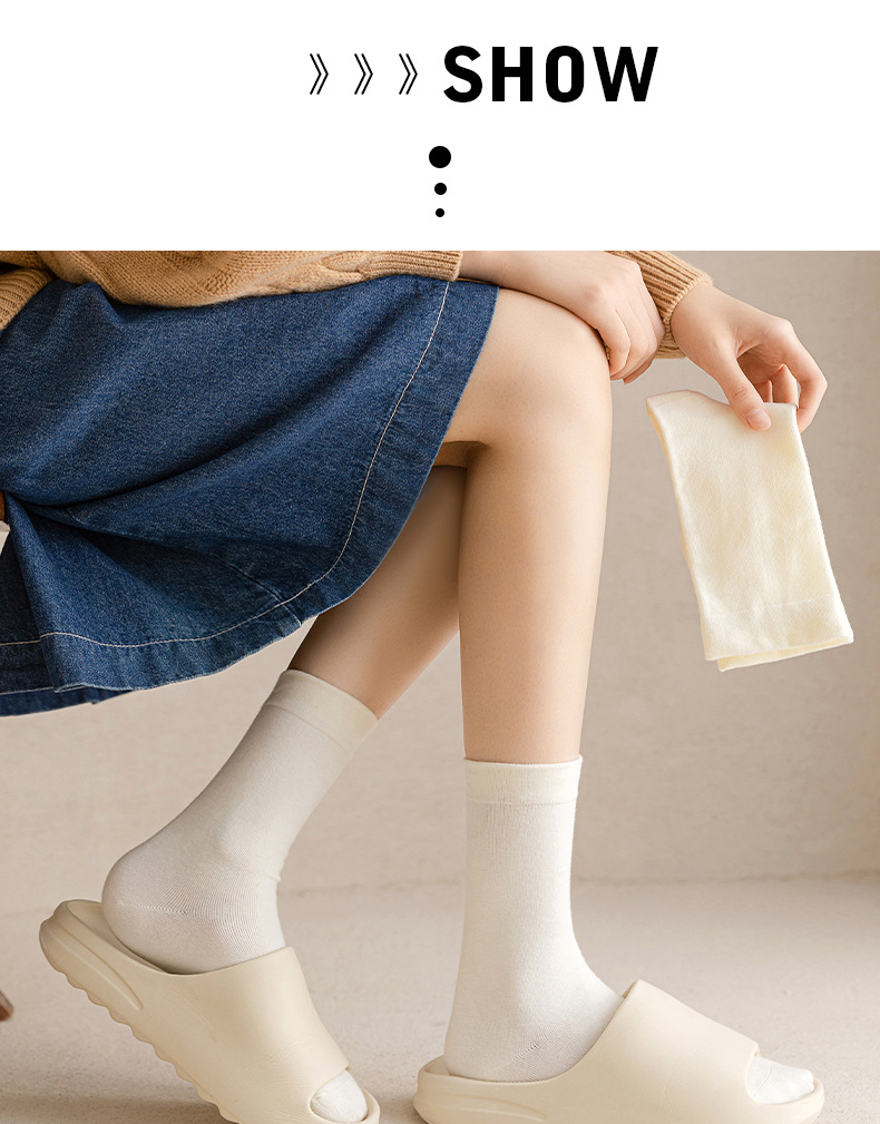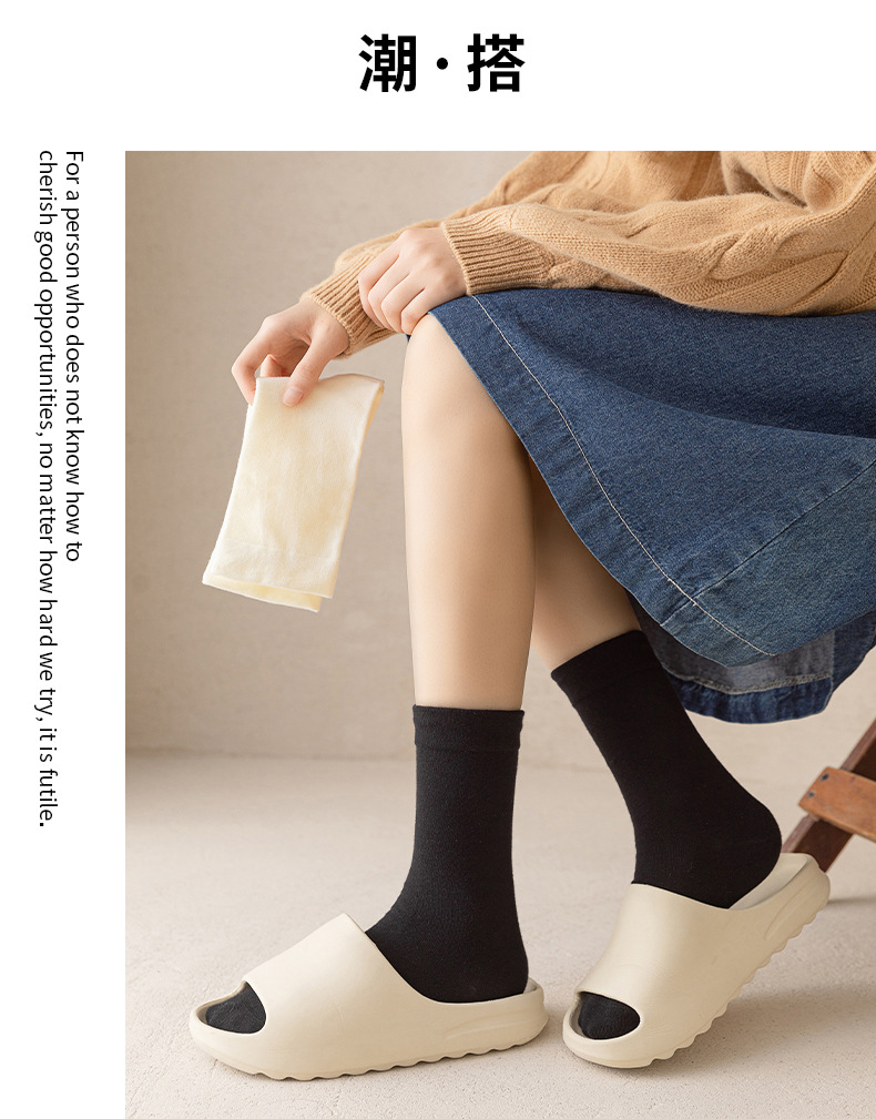 Dui Dui 양말 여성 봄, 여름 중반 송아지면 양말 뼈없는 흰색 스타킹 봄, 가을 감금 양말 검정 단색 스타킹스토어 가기
