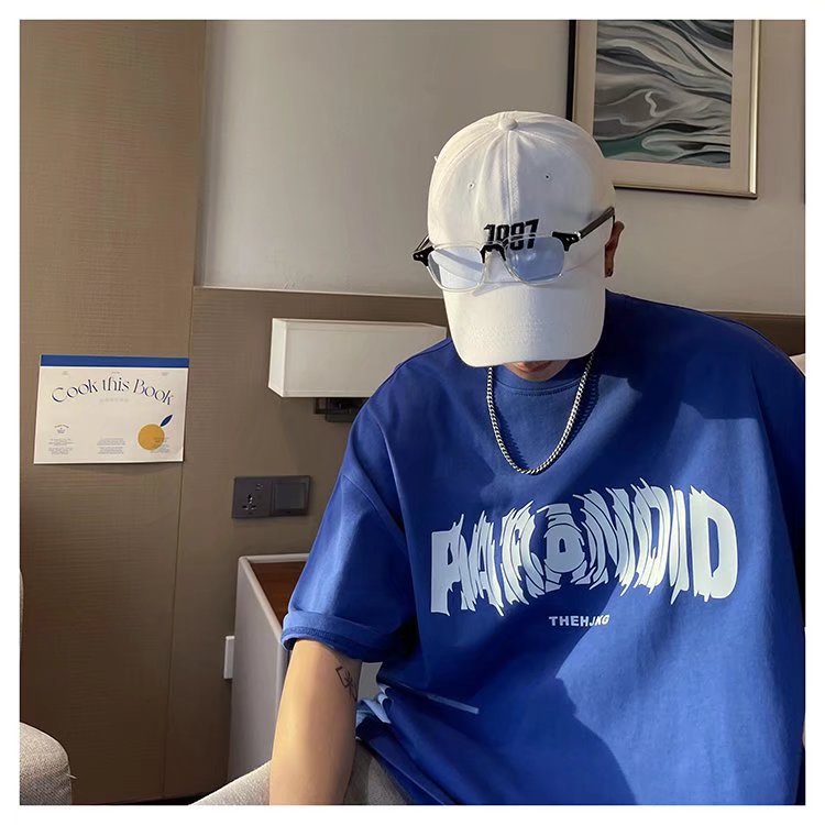 반팔 티셔츠 남성용 여름 미국식 힙합 패션 브랜드 커플 루즈한 플러스 사이즈 반팔 티셔츠 베이스 셔츠스토어 가기