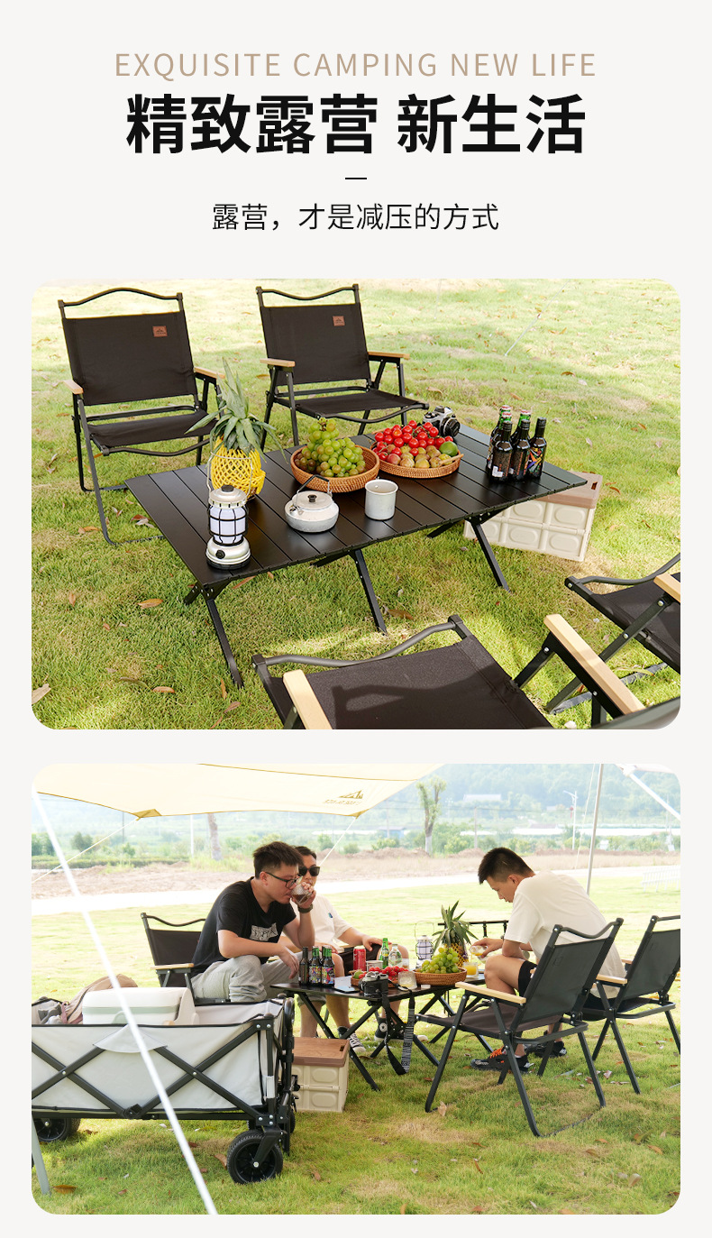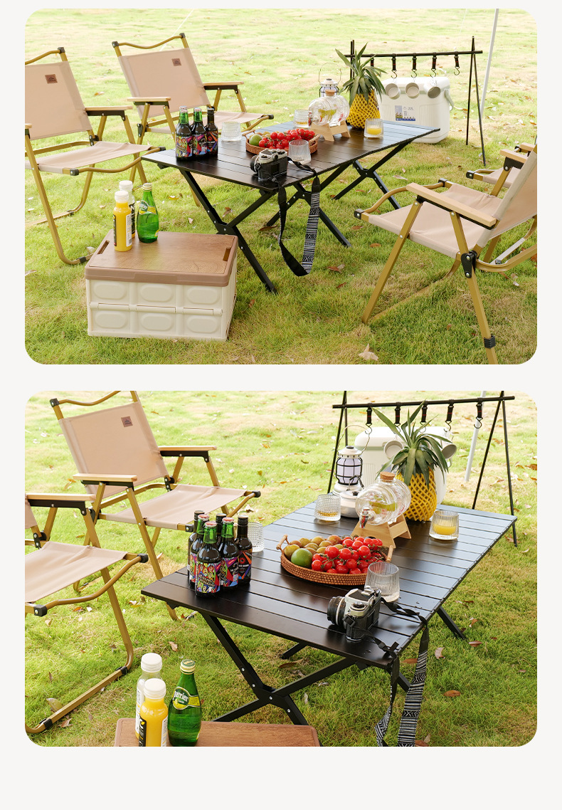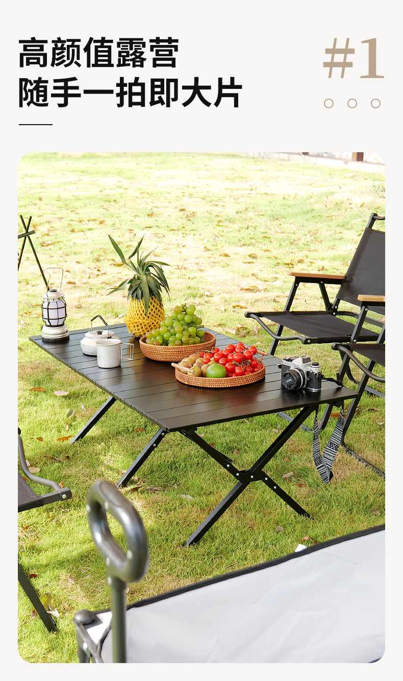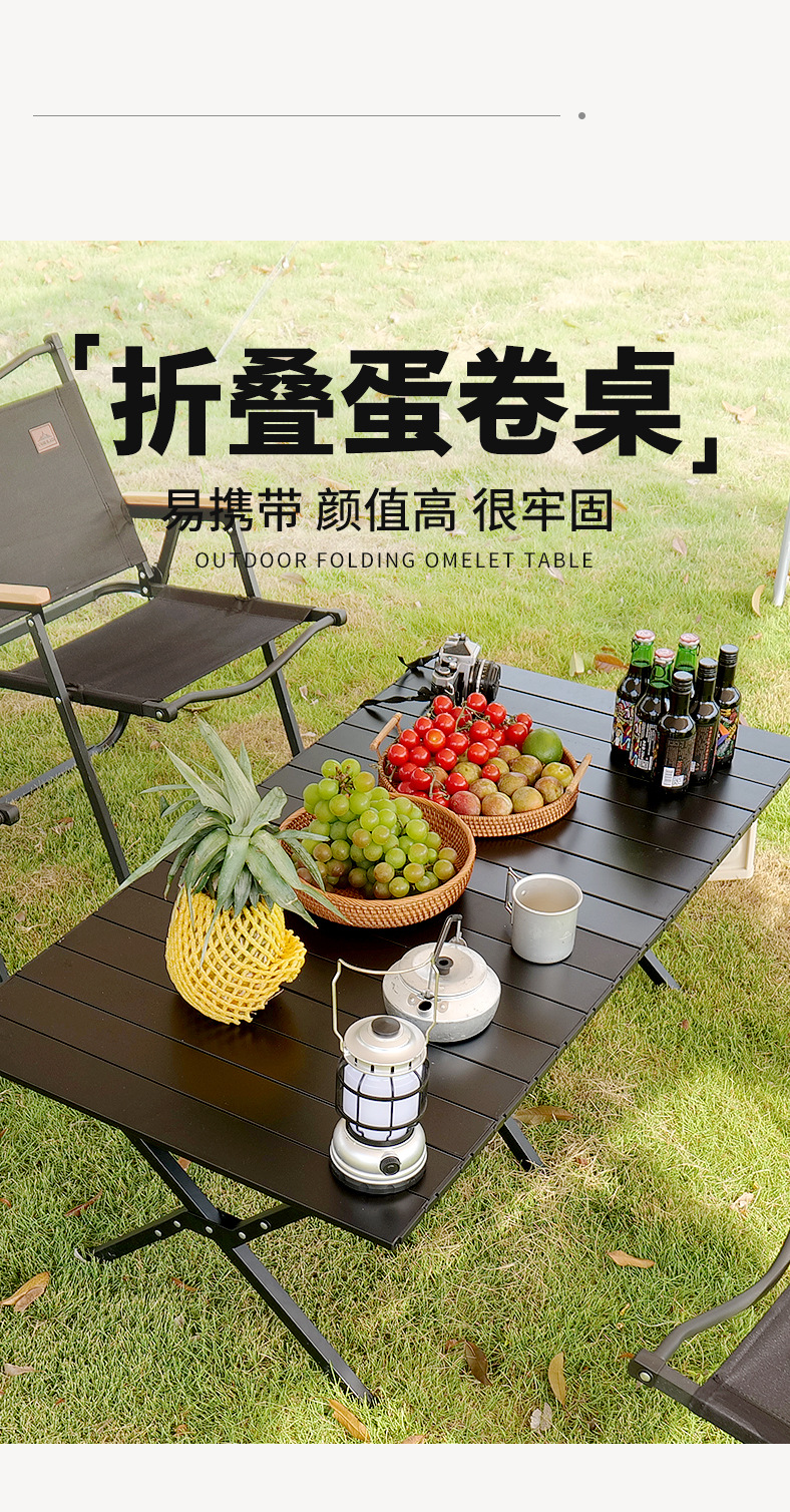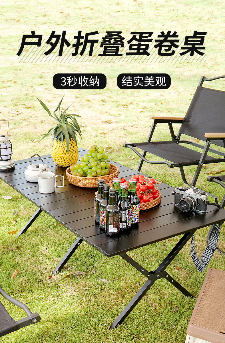 재고 야외 알루미늄 합금 계란 롤 테이블 캠핑 바베큐 피크닉 테이블 현대 간단하고 편리한 접이식 테이블 도매스토어 가기