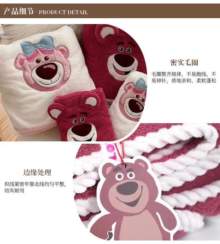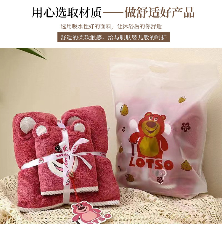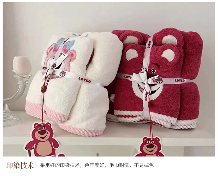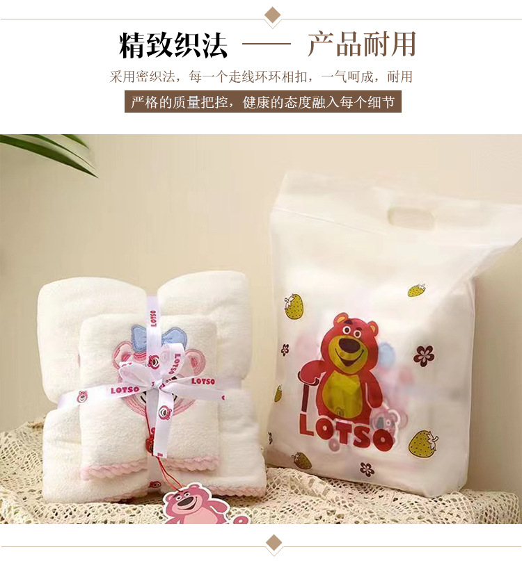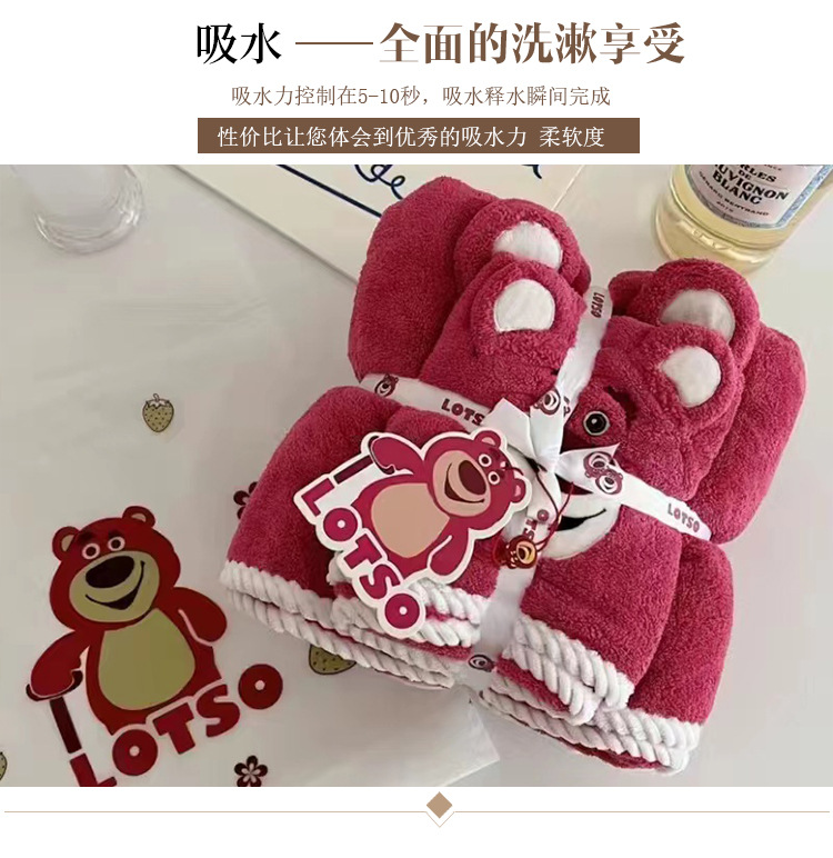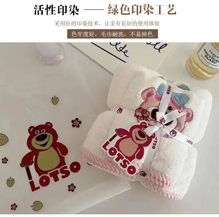 딸기 곰 목욕 타올 2 피스 어린이 만화 자수 여름 작은 커버 부드러운 흡수성 속건 비치 타올스토어 가기