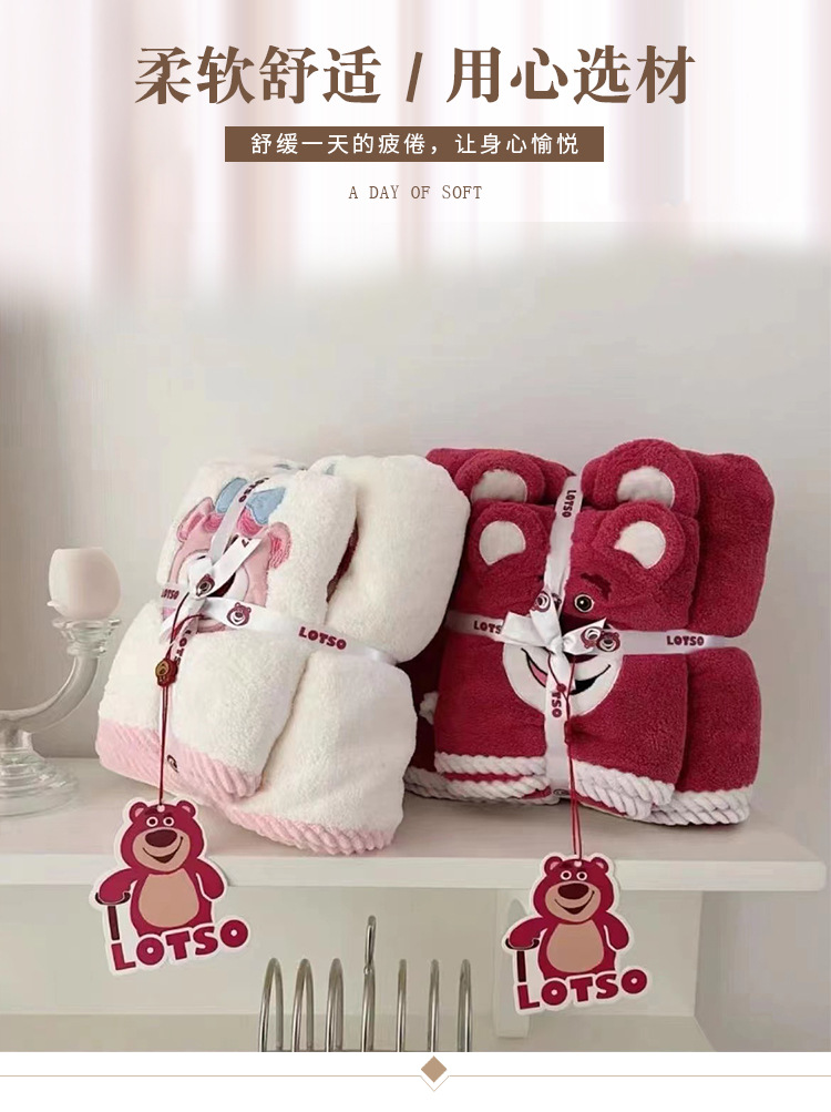 딸기 곰 목욕 타올 2 피스 어린이 만화 자수 여름 작은 커버 부드러운 흡수성 속건 비치 타올