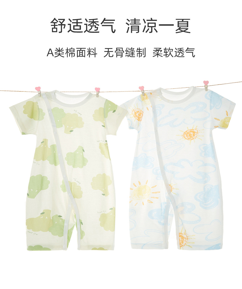 아기 점프 슈트 여름 얇은 아기의 반팔 바지 Har 옷 신생아의면 중공 메쉬 여름 옷스토어 가기
