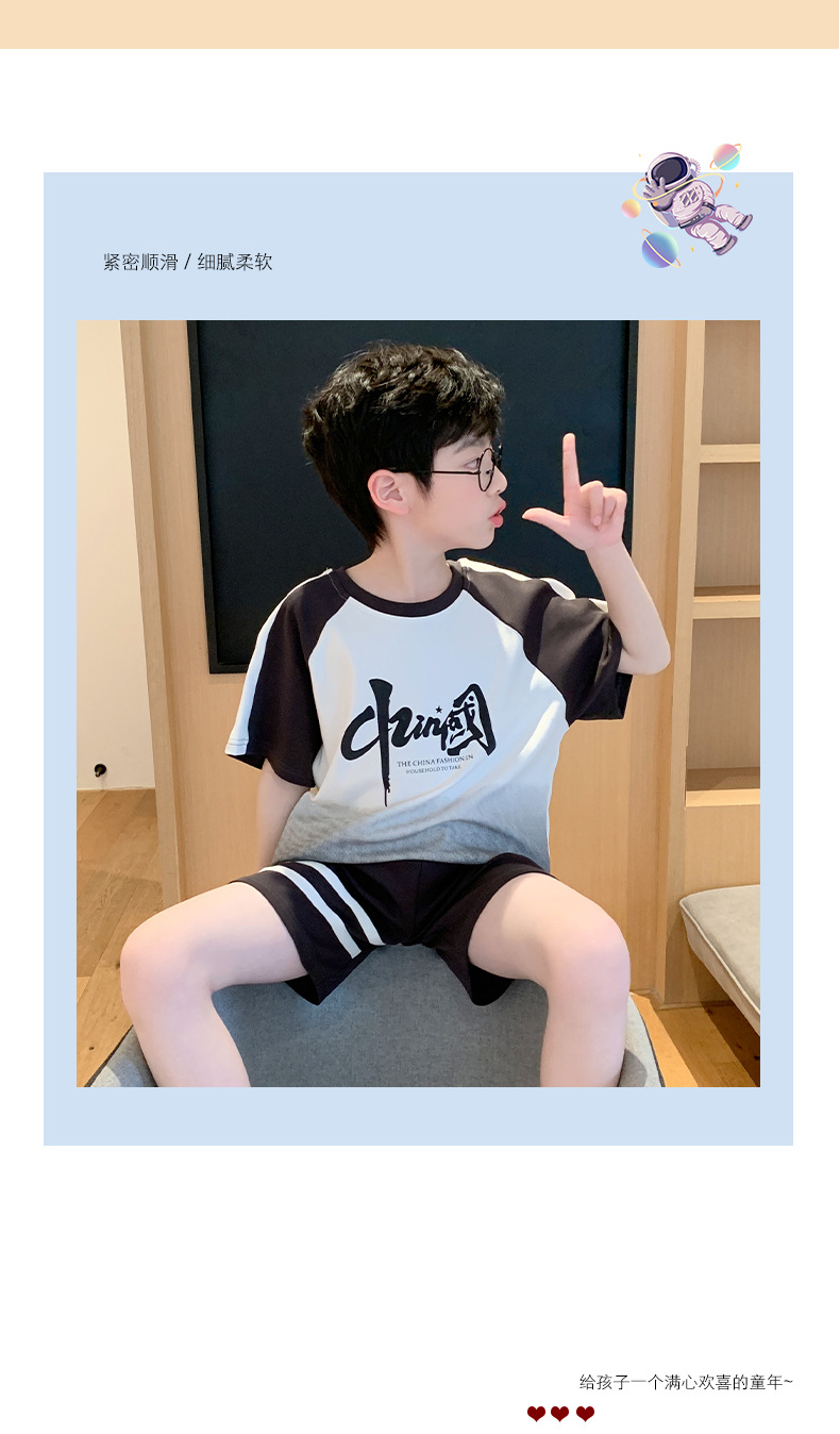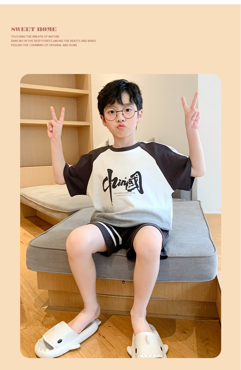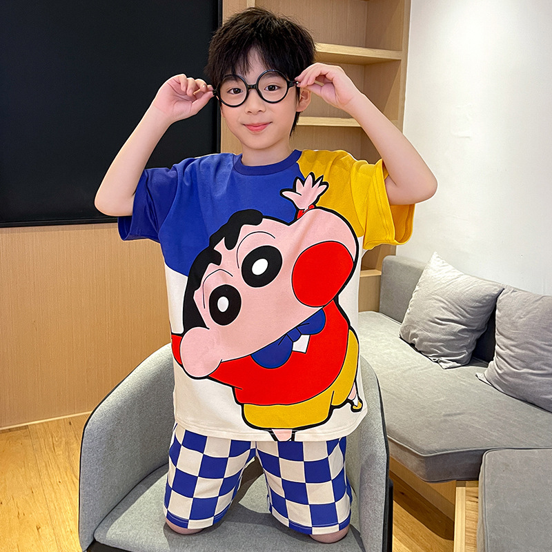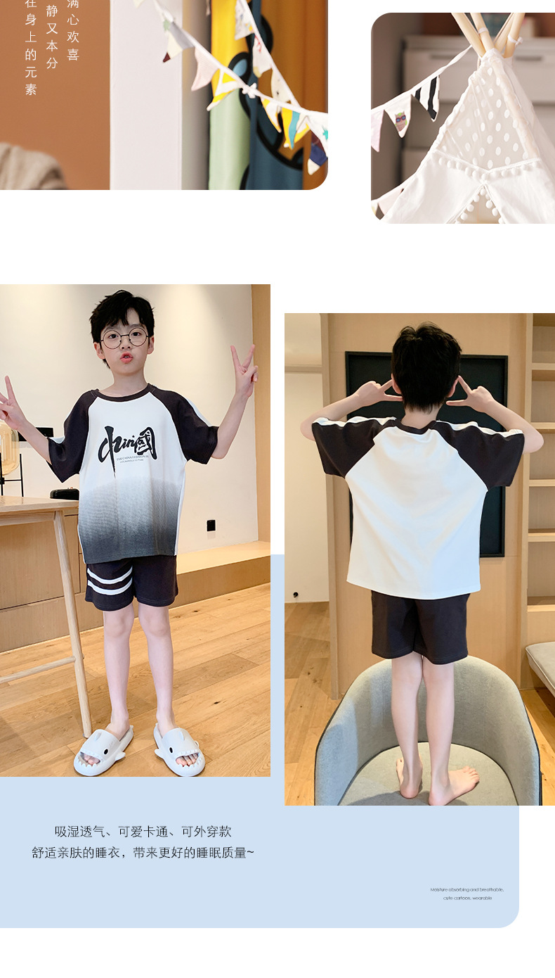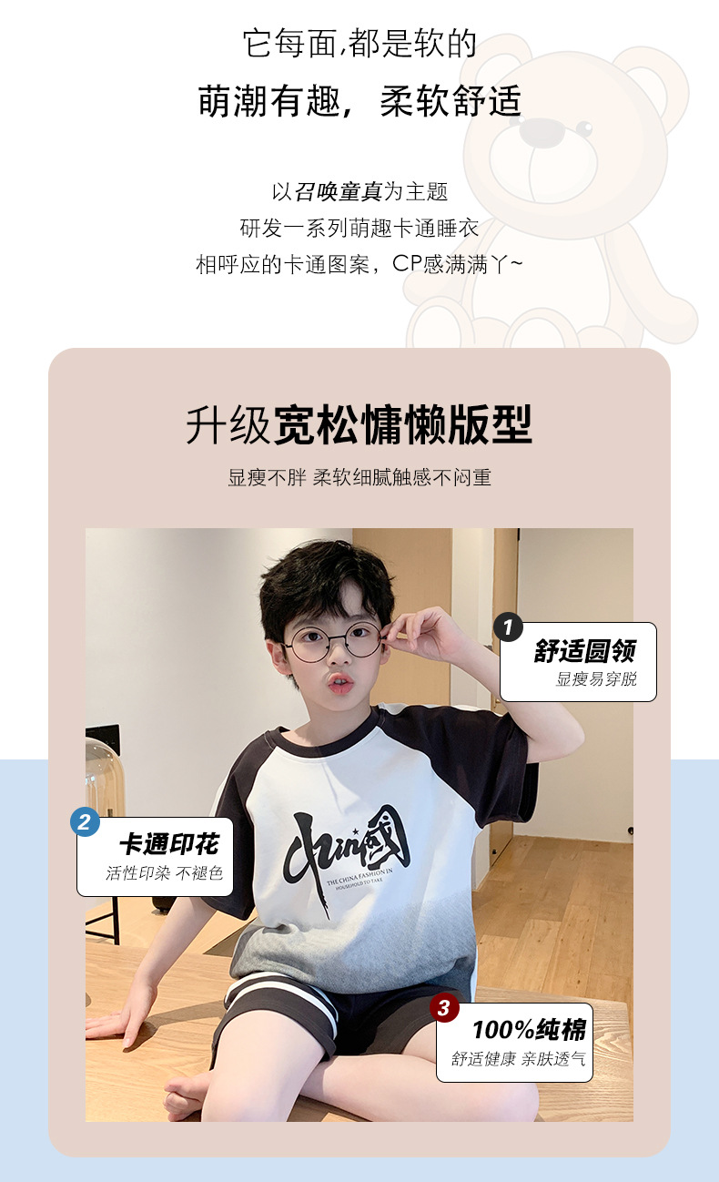 아동 잠옷, 남아용 여름 반팔 순면 만화 남아용 유아 및 중대형 아동 가정복 세트, 순면 및 통기성스토어 가기