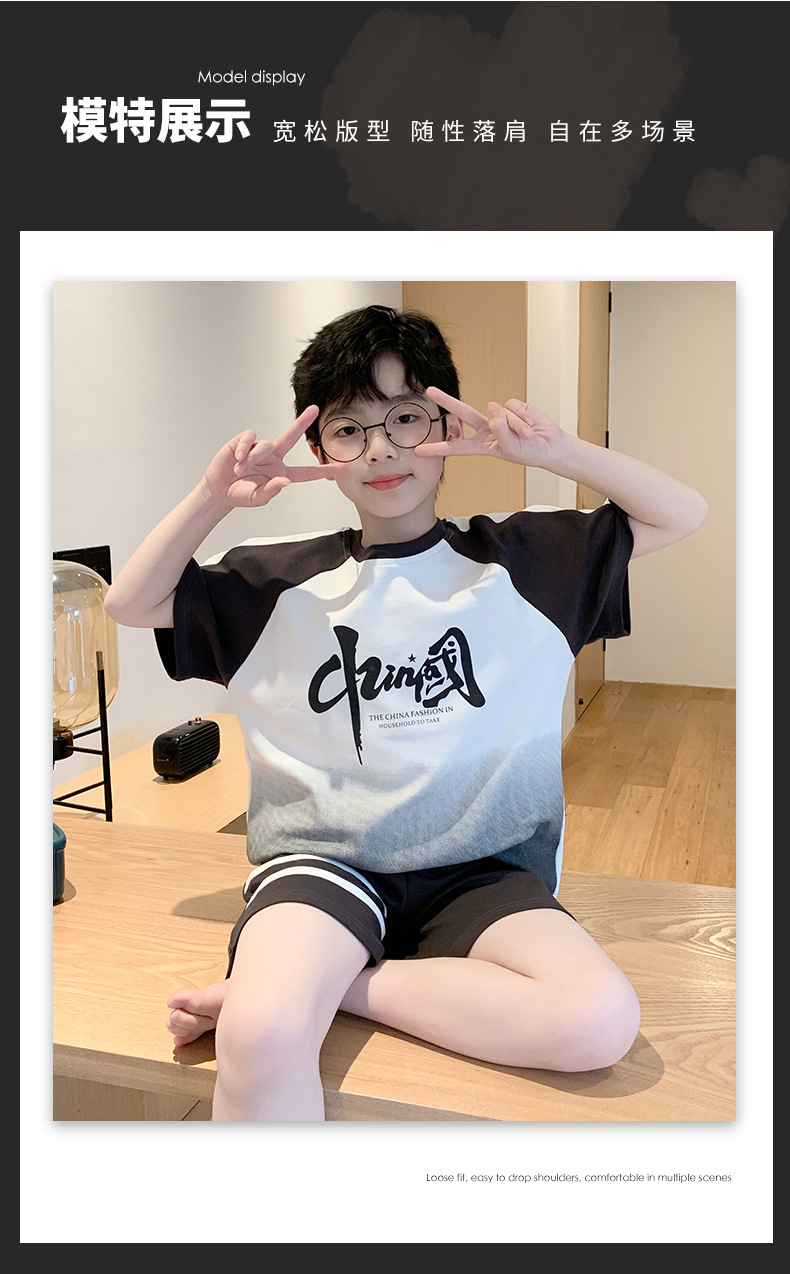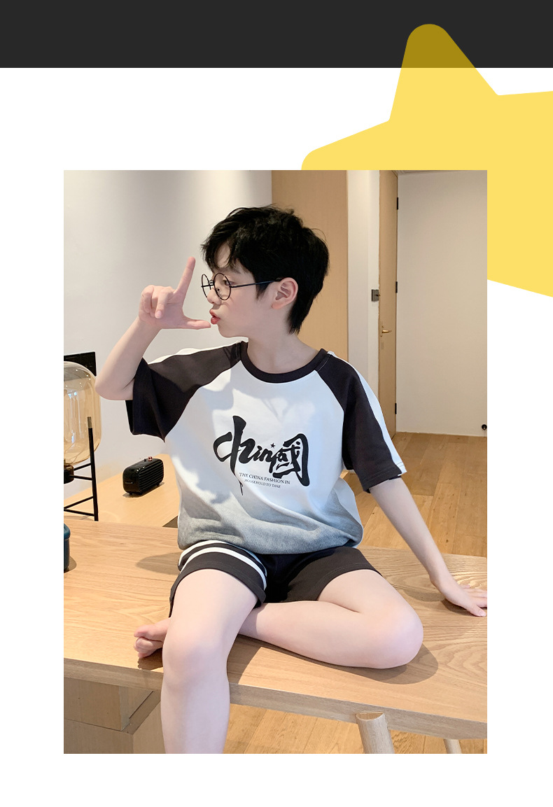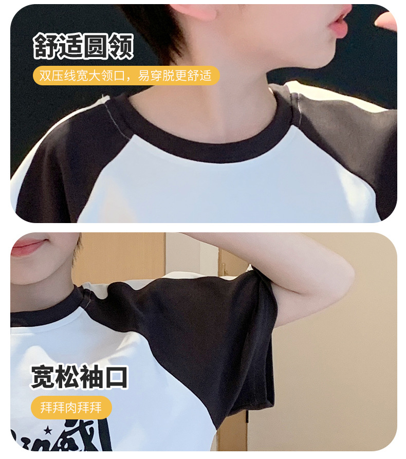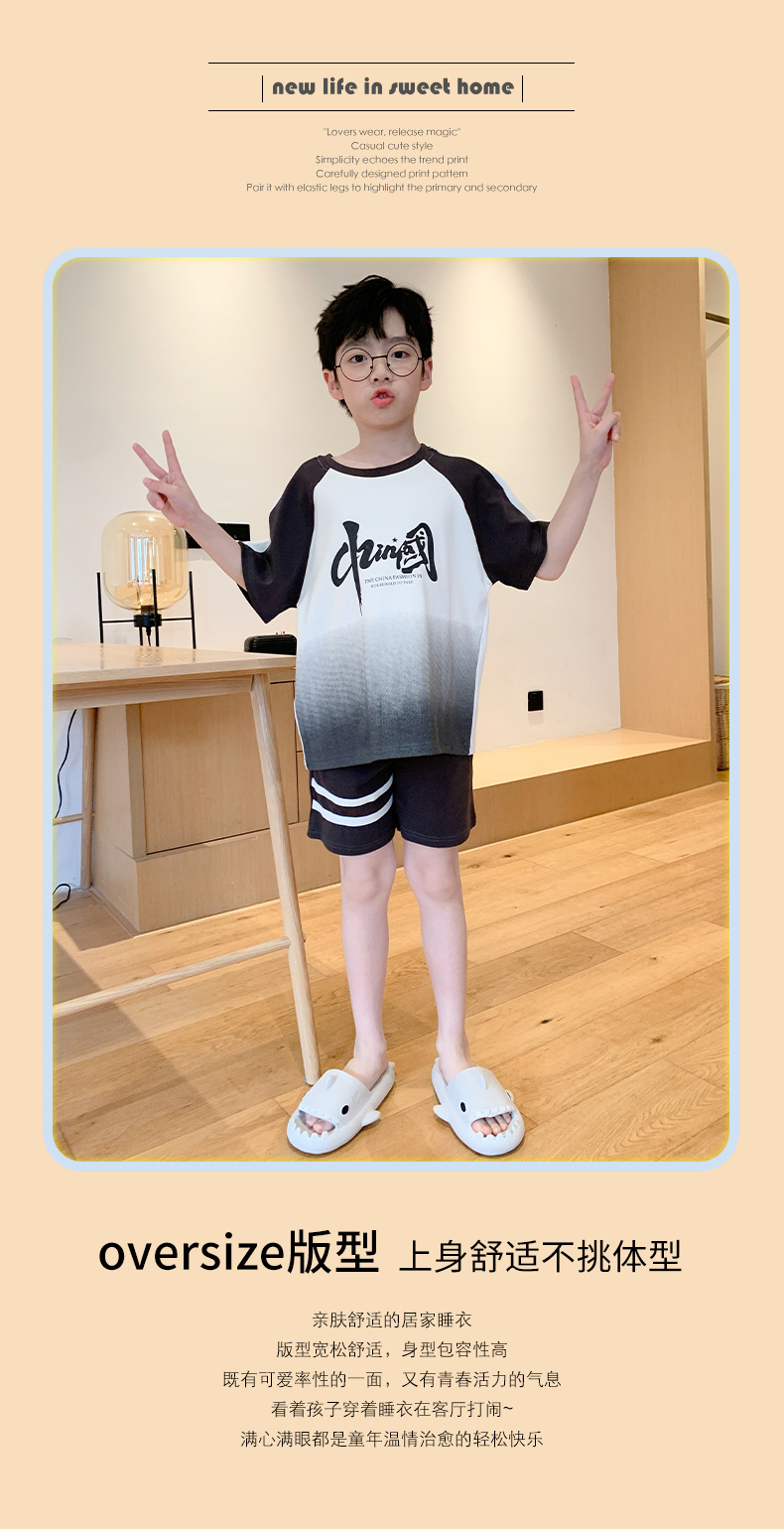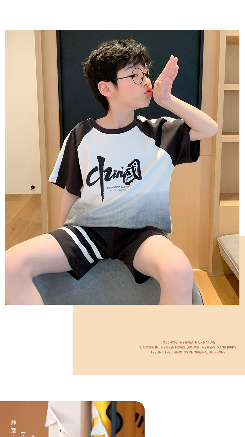 아동 잠옷, 남아용 여름 반팔 순면 만화 남아용 유아 및 중대형 아동 가정복 세트, 순면 및 통기성스토어 가기