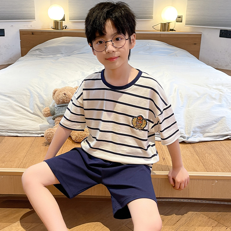아동 잠옷, 남아용 여름 반팔 순면 만화 남아용 유아 및 중대형 아동 가정복 세트, 순면 및 통기성