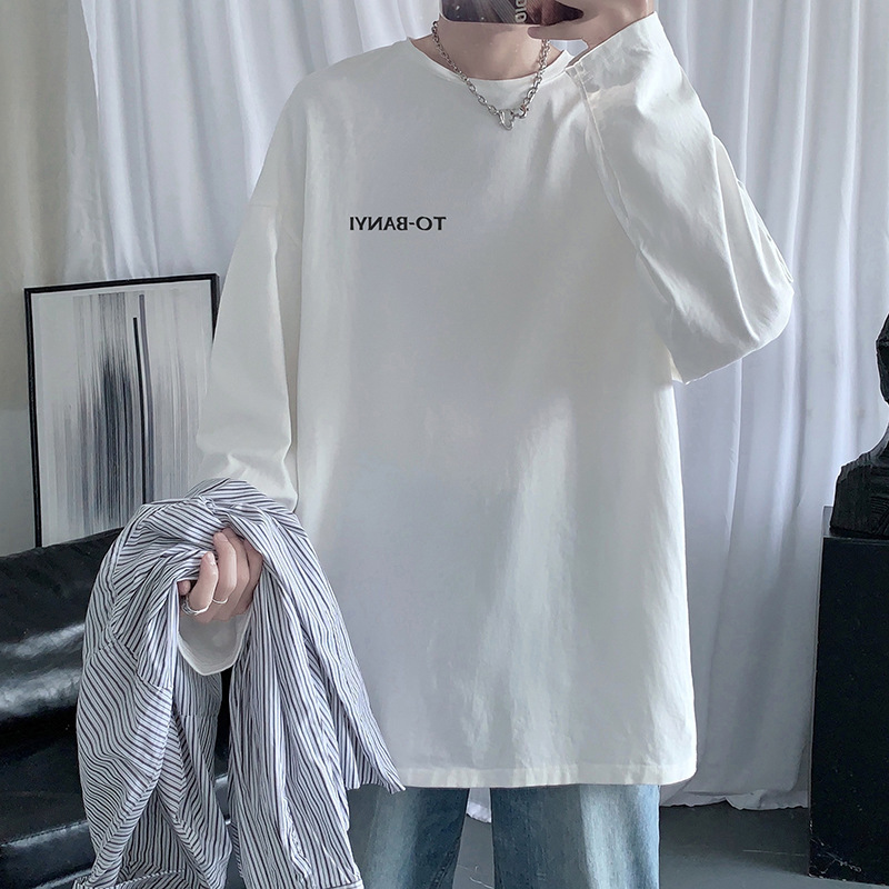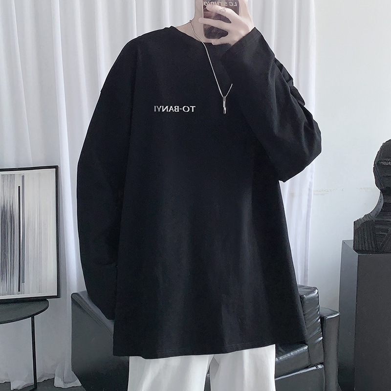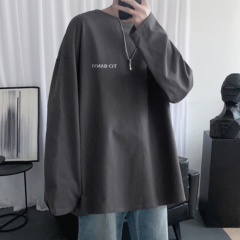 봄 신상 긴팔 티셔츠 남성용 홍콩 스타일 루즈한 라운드넥 베이스 셔츠 캐주얼 올매치 트렌디 루즈한 이너 탑스토어 가기