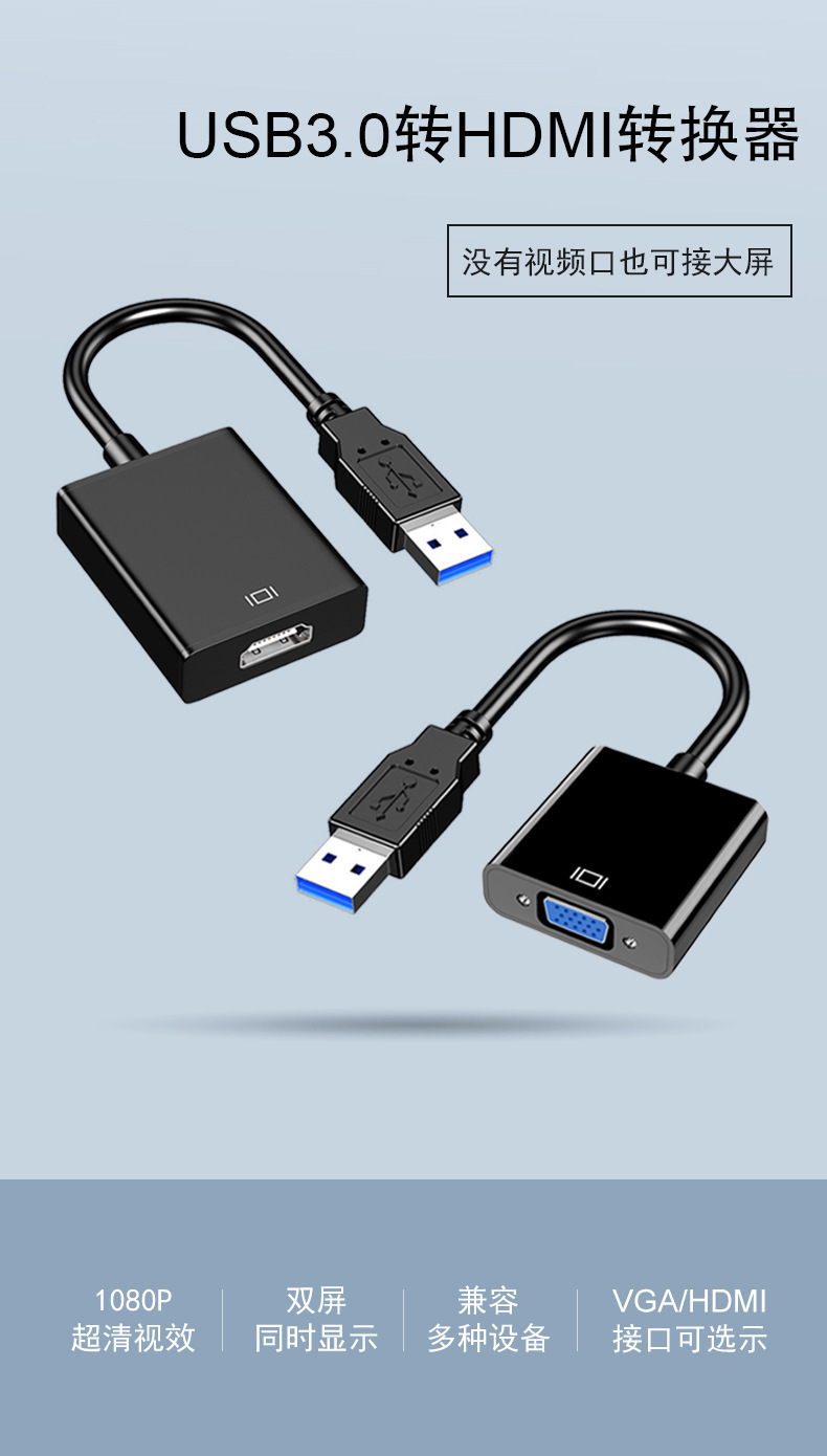USB to hdmi 어댑터 드라이버 무료 3.0 USB vga 변환기 오디오 및 비디오 출력 1080p HD스토어 가기