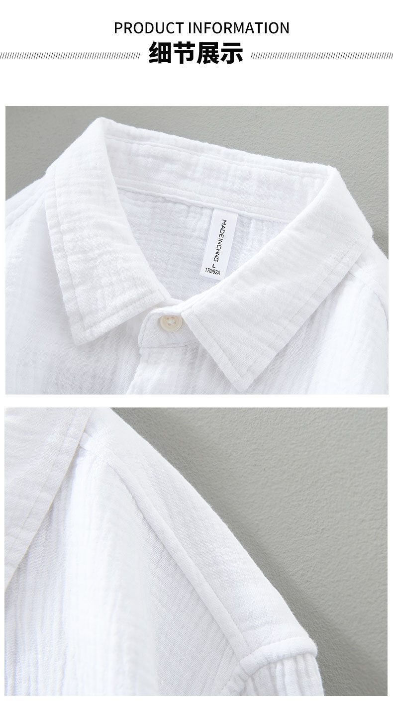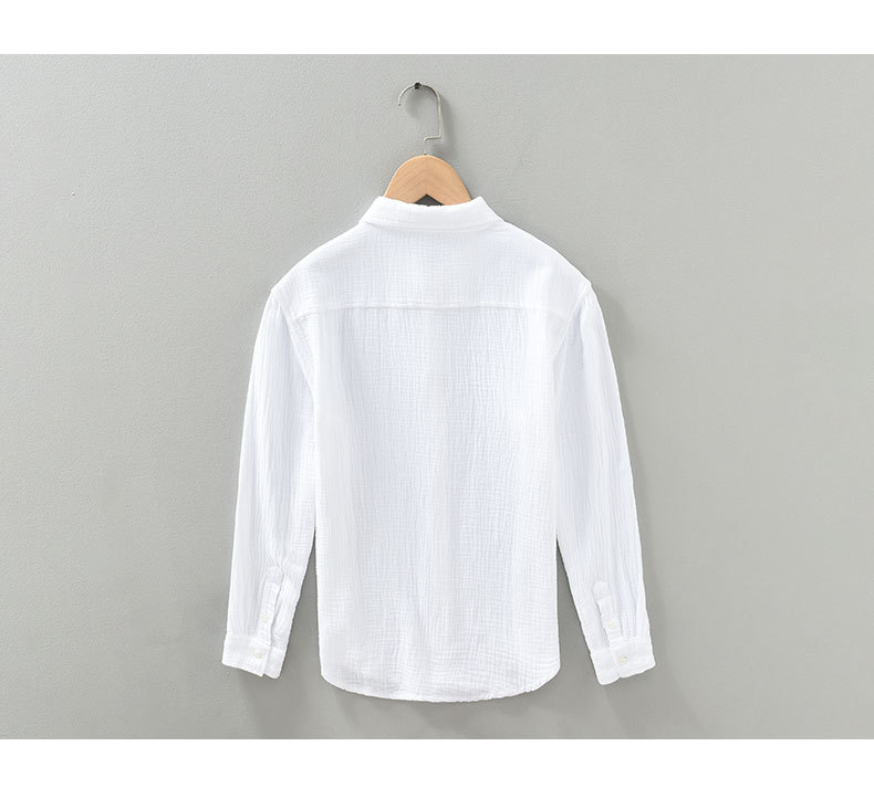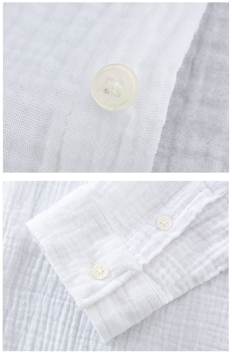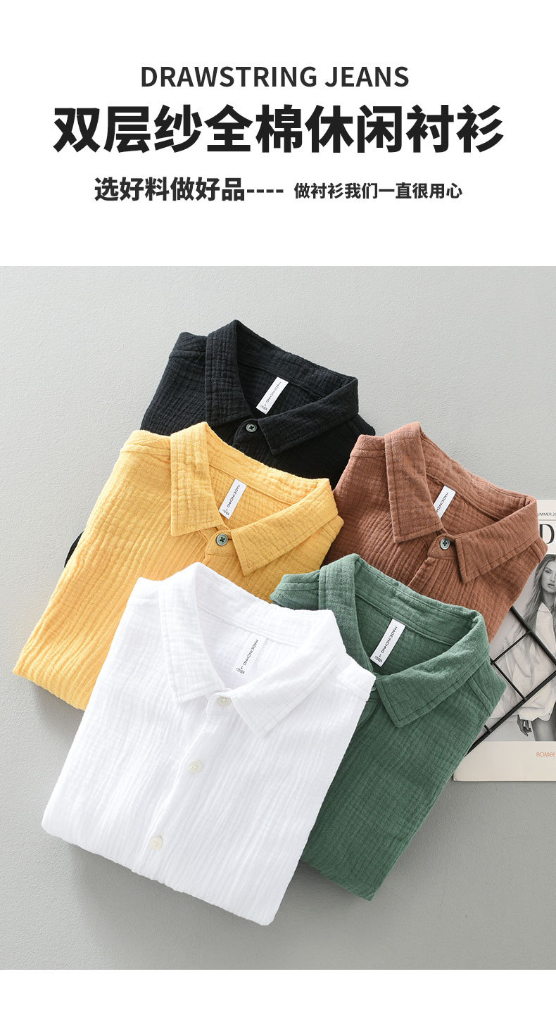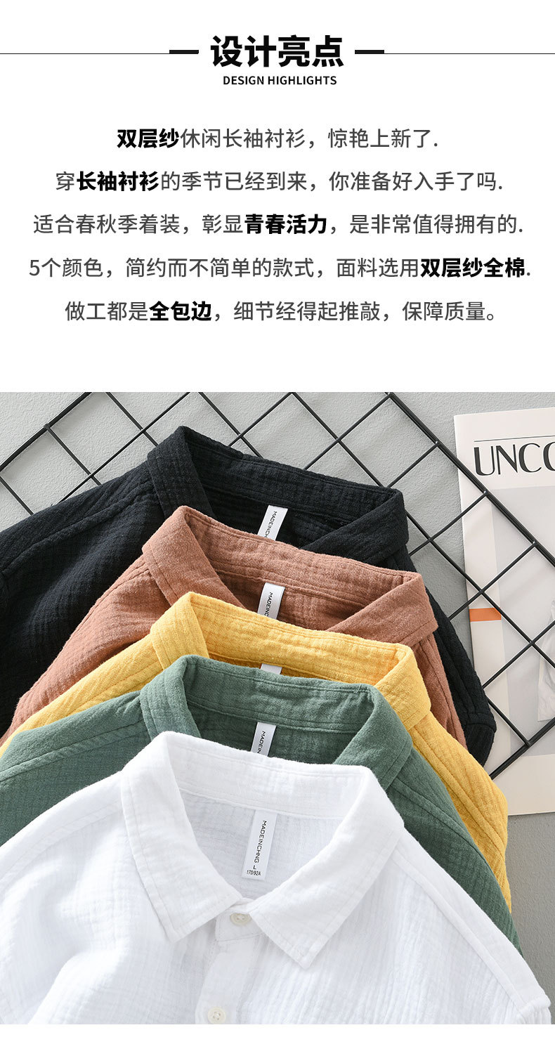 더블 레이어 면사 셔츠 남성용 한국식 슬림핏 구겨진 순면 긴팔 흰색 셔츠 캐주얼 핸섬 탑 트렌디 솔리드 컬러스토어 가기