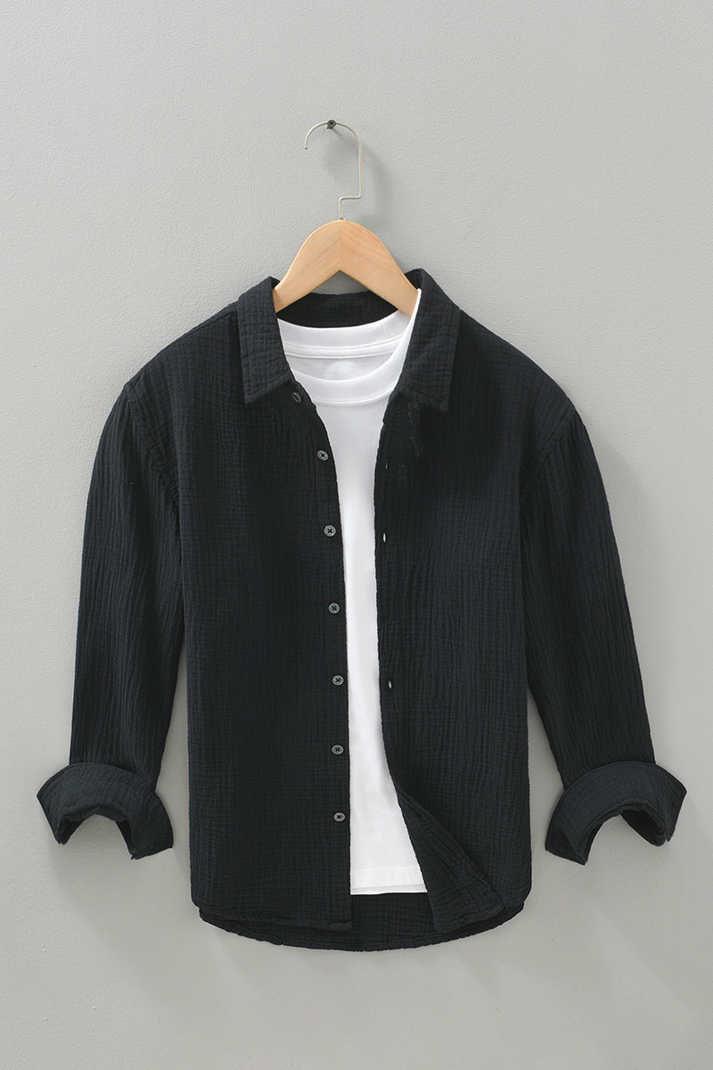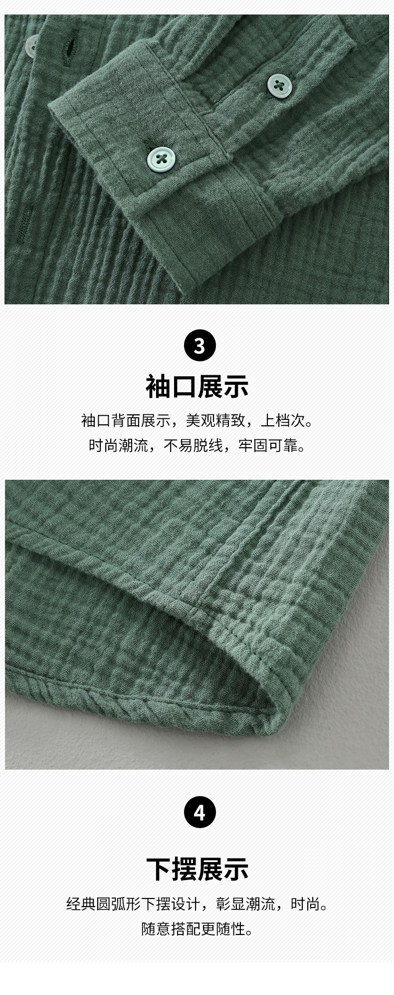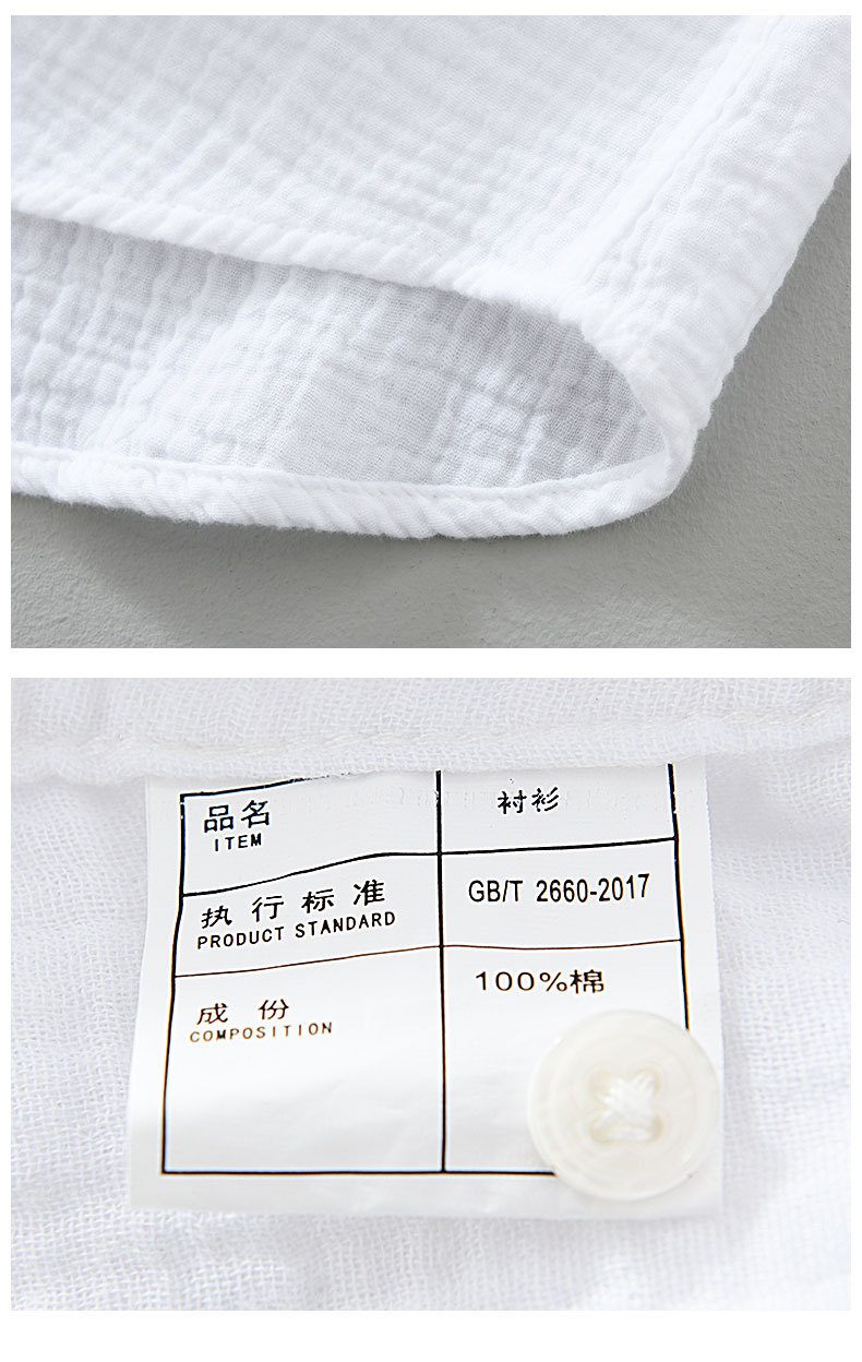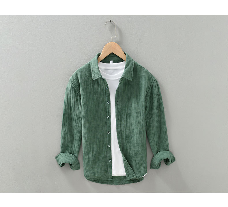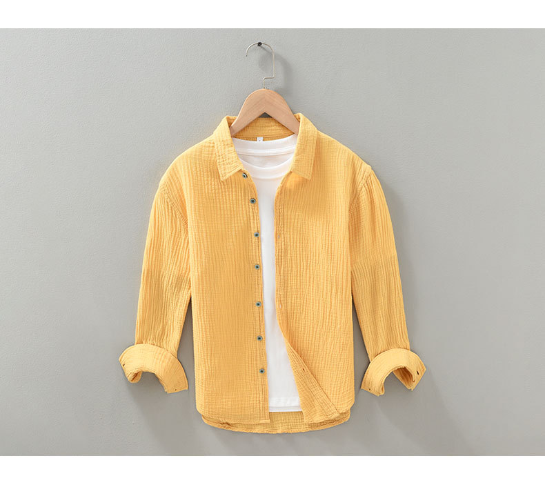 더블 레이어 면사 셔츠 남성용 한국식 슬림핏 구겨진 순면 긴팔 흰색 셔츠 캐주얼 핸섬 탑 트렌디 솔리드 컬러스토어 가기