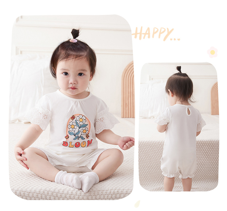 아이디어 아기 소녀 2023 여름 여아 점프 수트 한국 심플 반팔 아웃웨어 짧은 등반 3127스토어 가기
