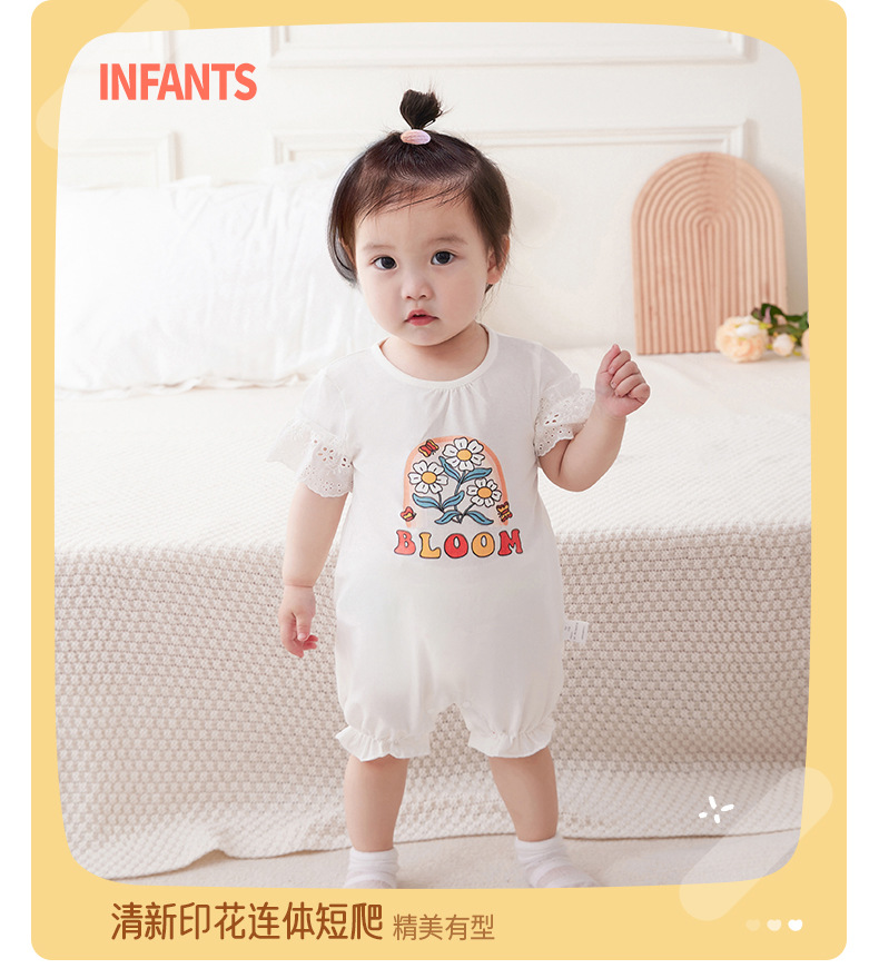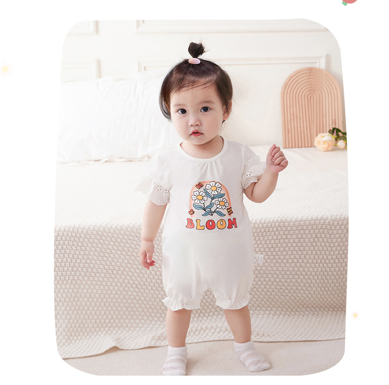 아이디어 아기 소녀 2023 여름 여아 점프 수트 한국 심플 반팔 아웃웨어 짧은 등반 3127