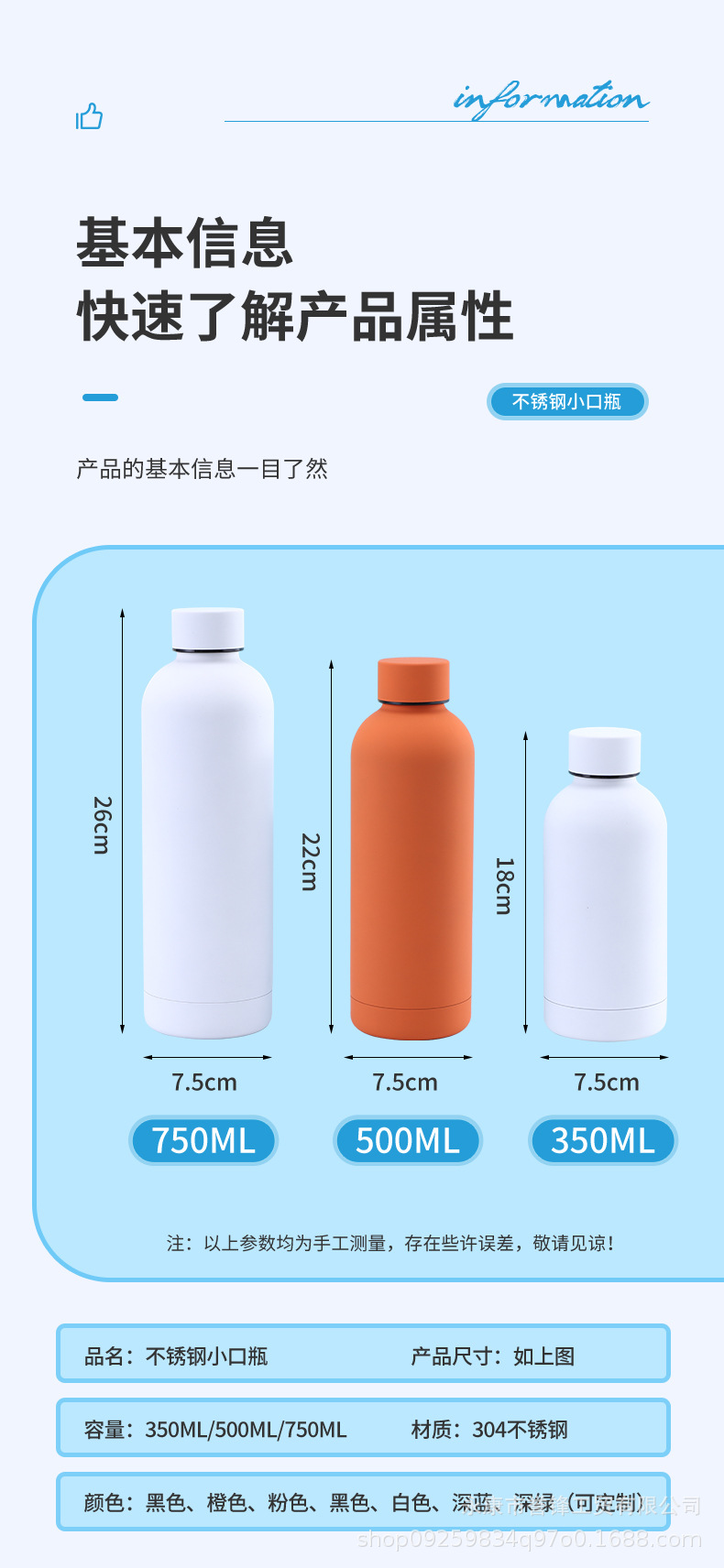 높은 색상 값 스테인레스 스틸 작은 입 대용량 보온병 휴대용 학생 미니 스포츠 물병 야외 등산 냄비