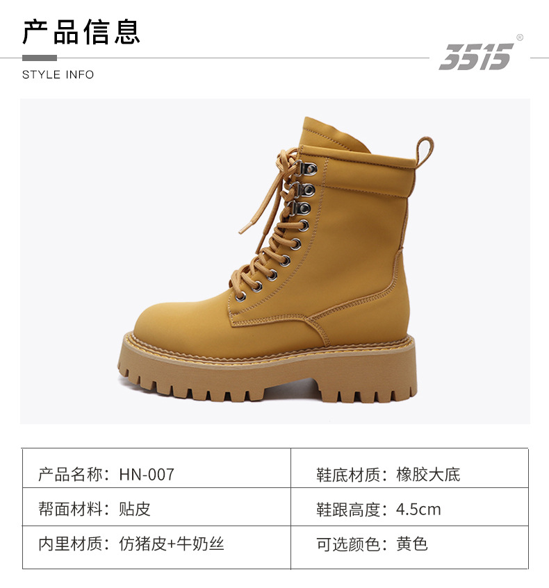 Jihua 3515 New Martin 부츠 여성용 싱글 부츠 영국 스타일 두꺼운 바닥 짧은 부츠 튀김 아케이드 자동차 부츠 통기성 싱글 부츠 여성