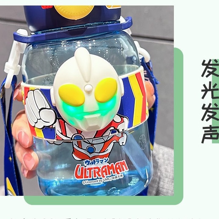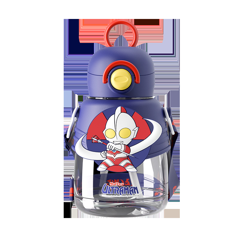 울트라맨 큰 배꼽 컵 어린이 흡입 튜브 컵 어린이 여름 플라스틱 물 컵 고온 저항 학생 스포츠 휴대용 주전자