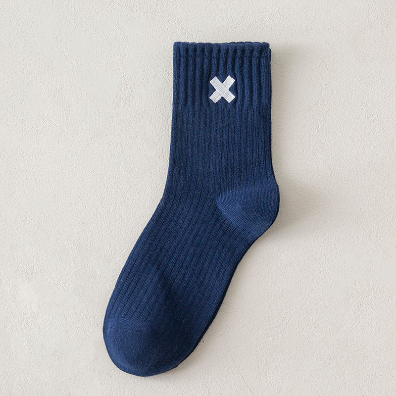 2022 가을과 겨울 남성용 높은 고무 밴드 스포츠면 양말 X 글자 수 놓은 가을과 겨울 스타킹 캐주얼 양말스토어 가기