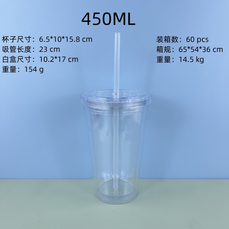 크로스보더 직구 2 중 플라스틱 빨대컵 16 온스 스팽글 카드 투명 플랫 뚜껑 선물 450ml 단색 물컵스토어 가기