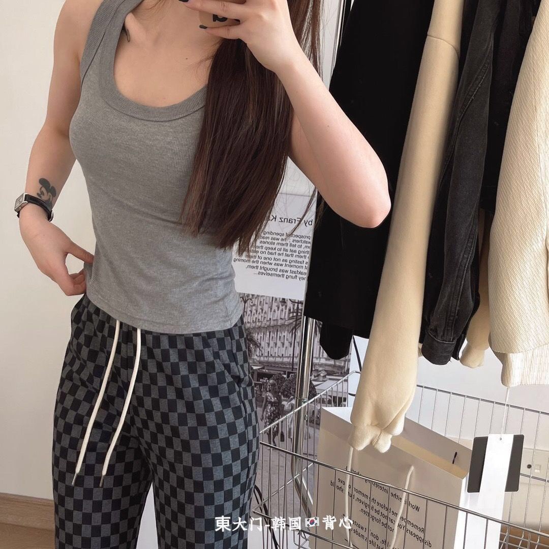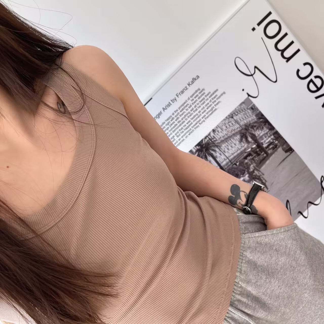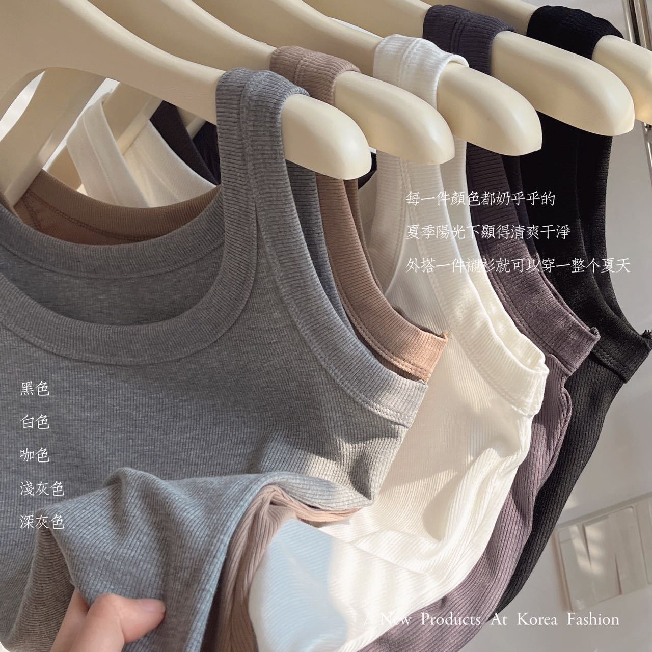 봄 여름 여성용 바닥 조끼, 순면, 라운드 넥, 고탄성, 통기성, 가슴 수축, 여고생이 밖에서 입을 수 있는 작은 조끼스토어 가기