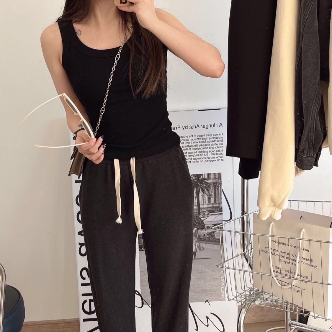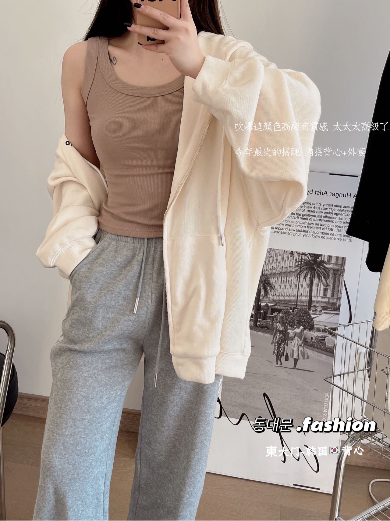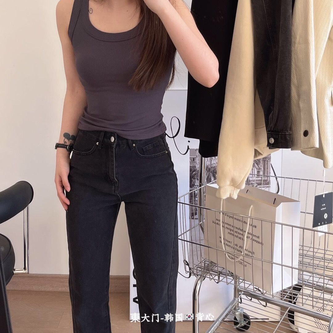 봄 여름 여성용 바닥 조끼, 순면, 라운드 넥, 고탄성, 통기성, 가슴 수축, 여고생이 밖에서 입을 수 있는 작은 조끼스토어 가기