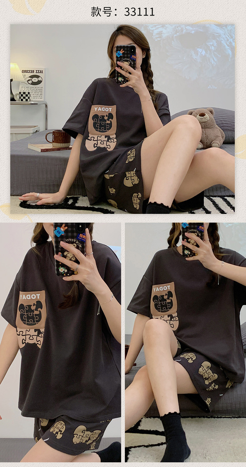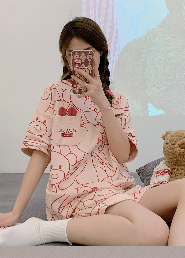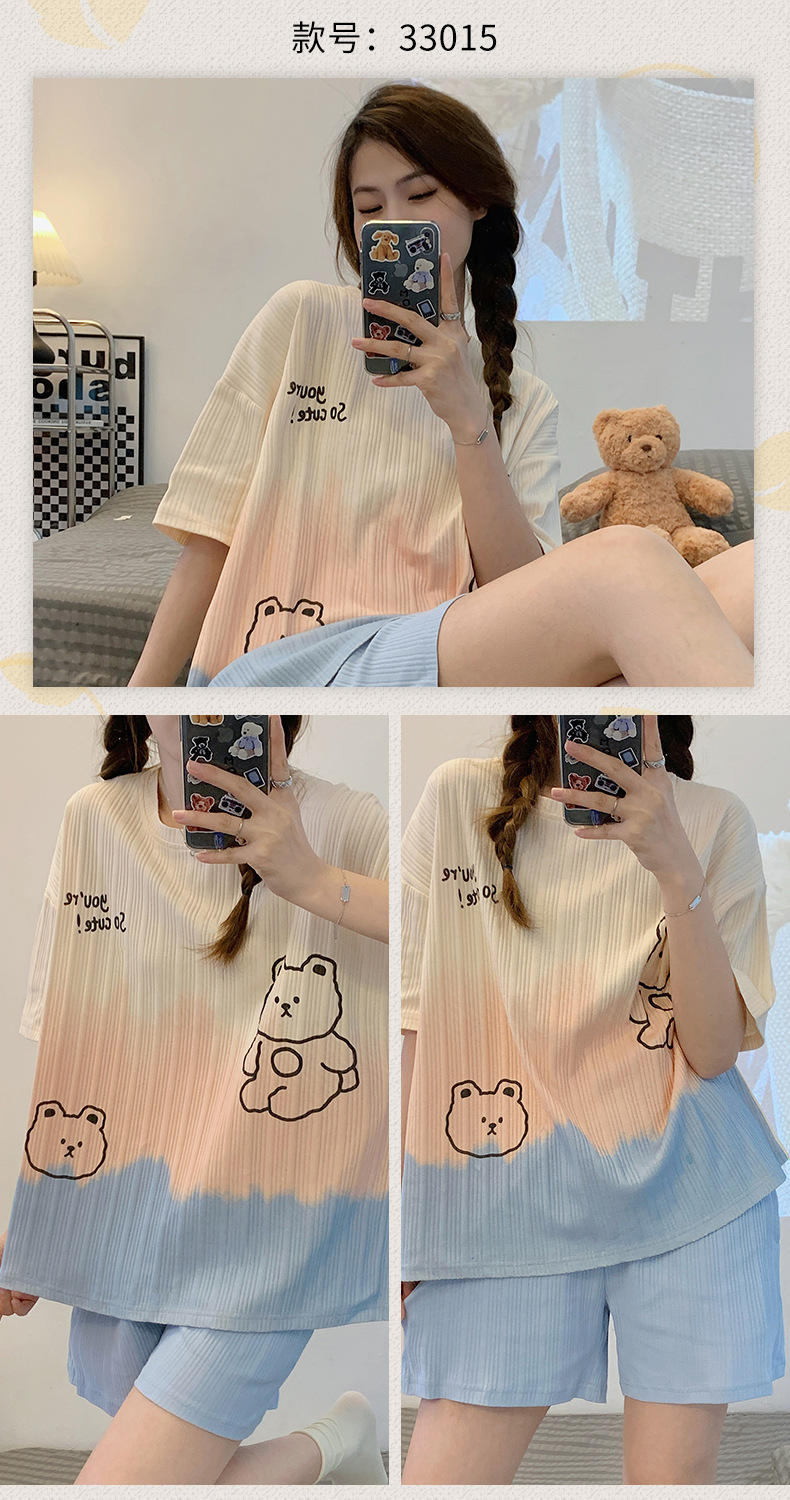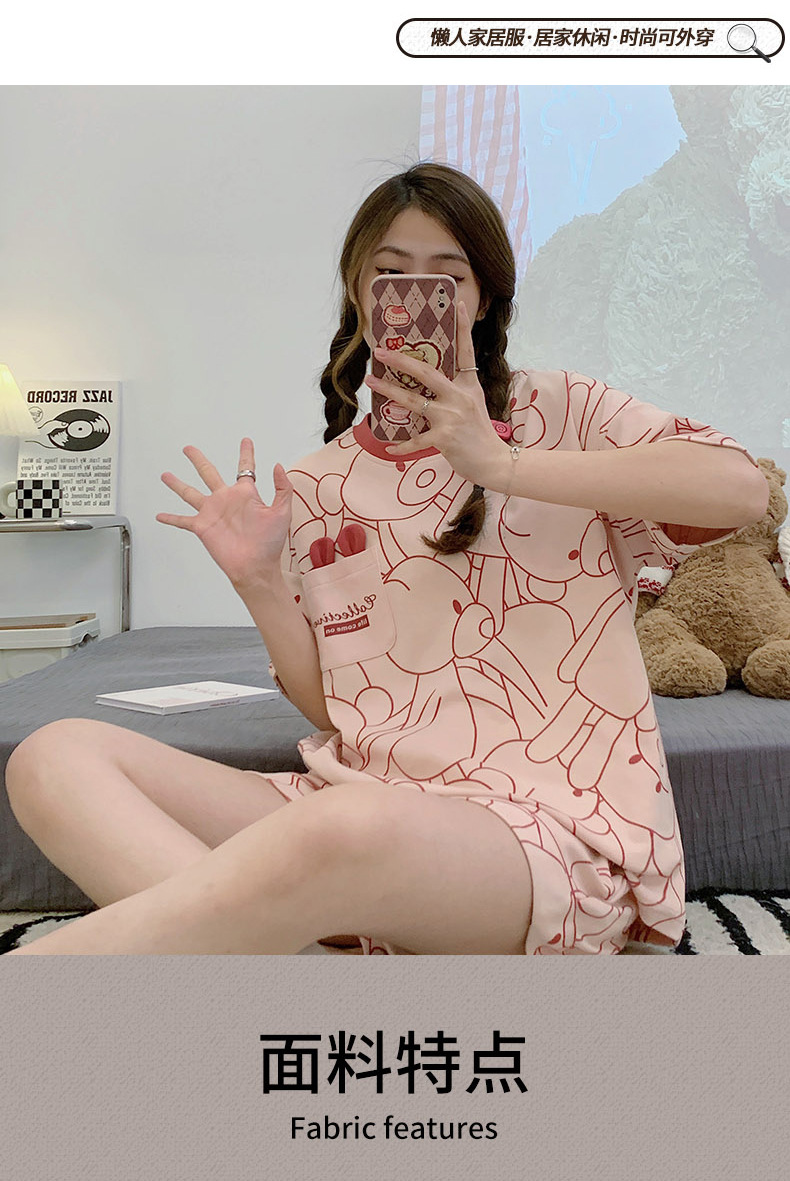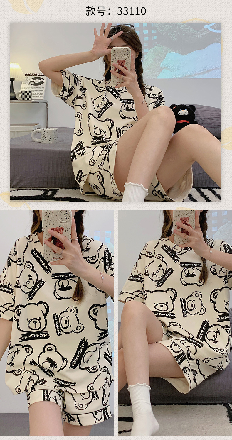 여성용 잠옷 반팔 여름 면세트 한국 스타일 학생복 달콤하고 귀여운 만화풍 루즈핏 큰 사이즈 홈웨어 시원한 느낌스토어 가기