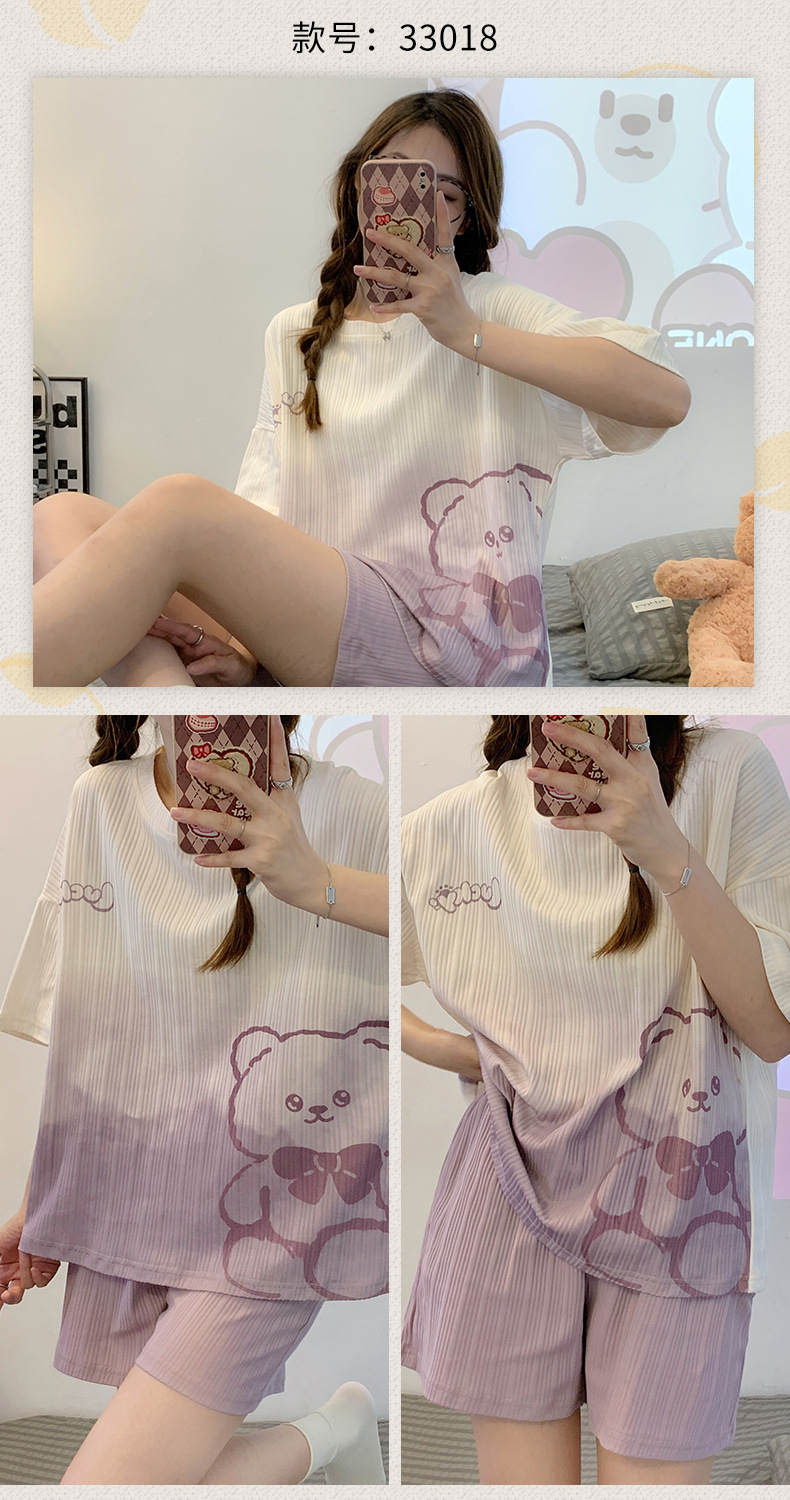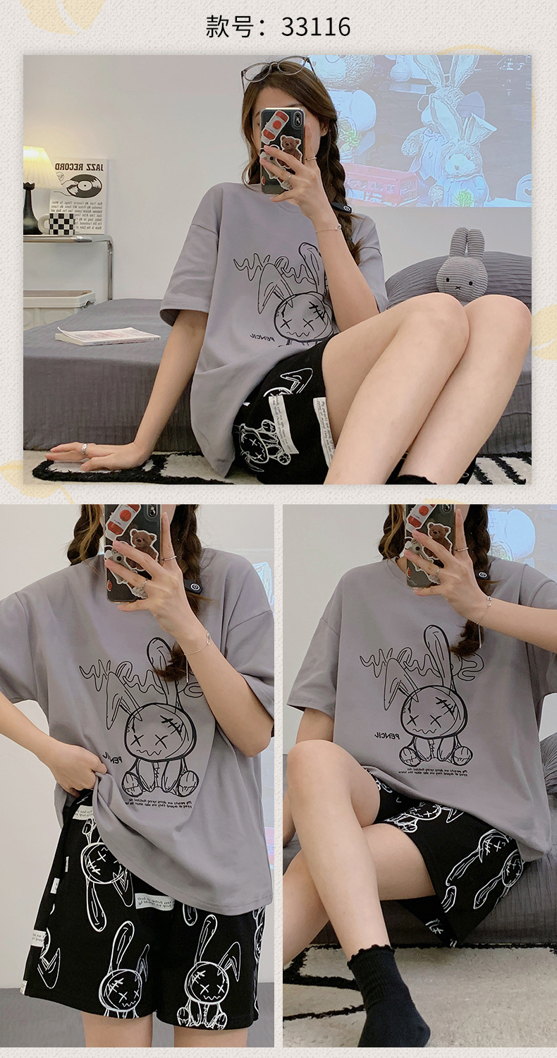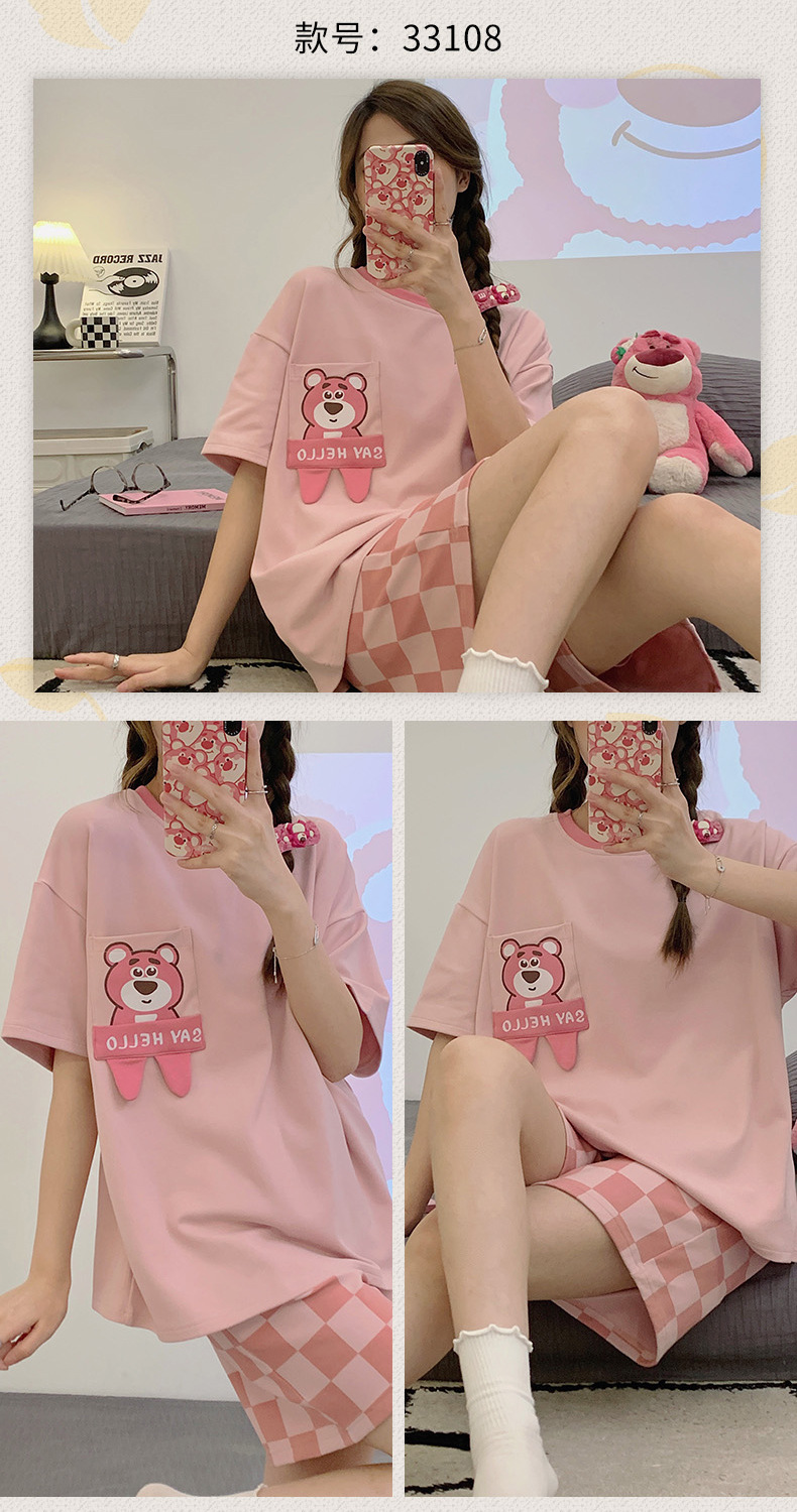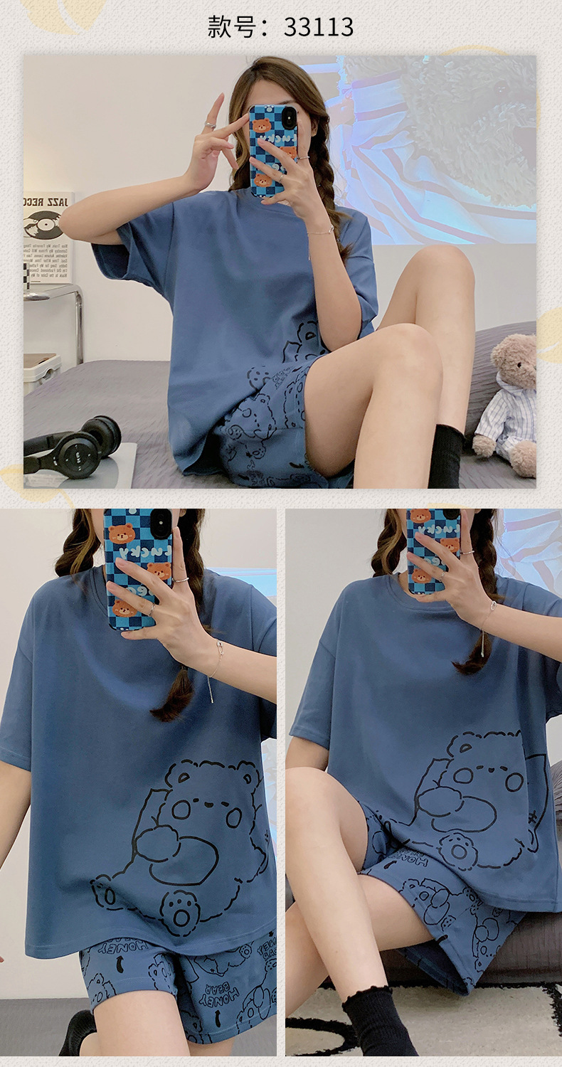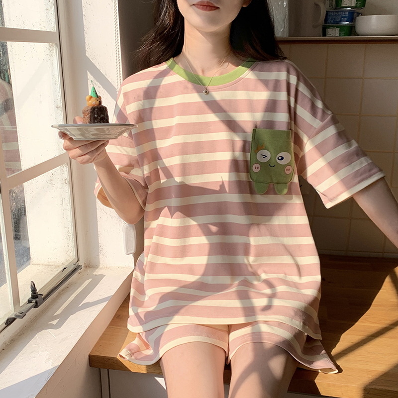여성용 잠옷 반팔 여름 면세트 한국 스타일 학생복 달콤하고 귀여운 만화풍 루즈핏 큰 사이즈 홈웨어 시원한 느낌스토어 가기