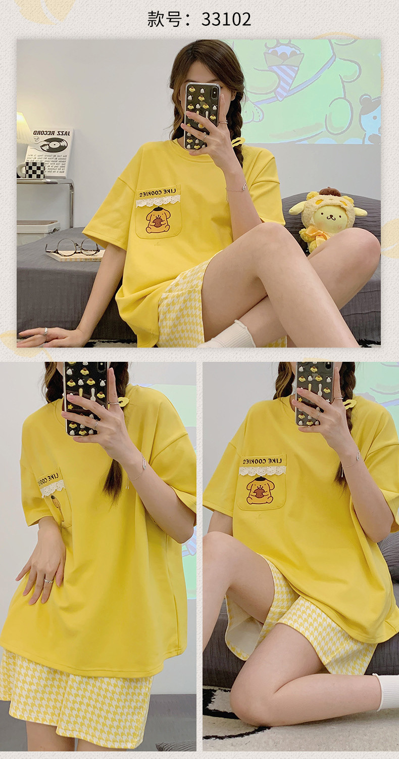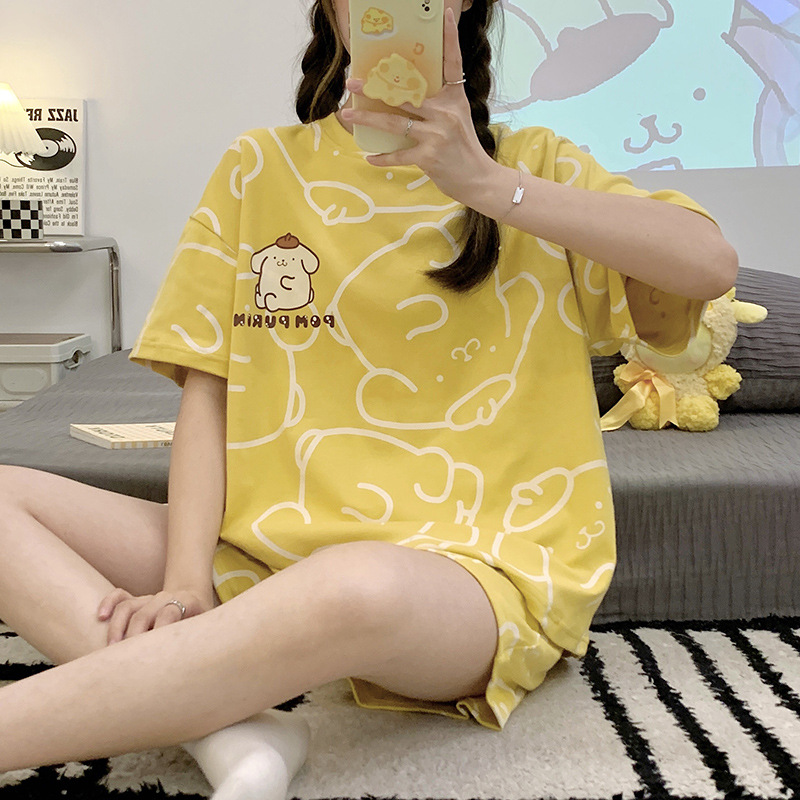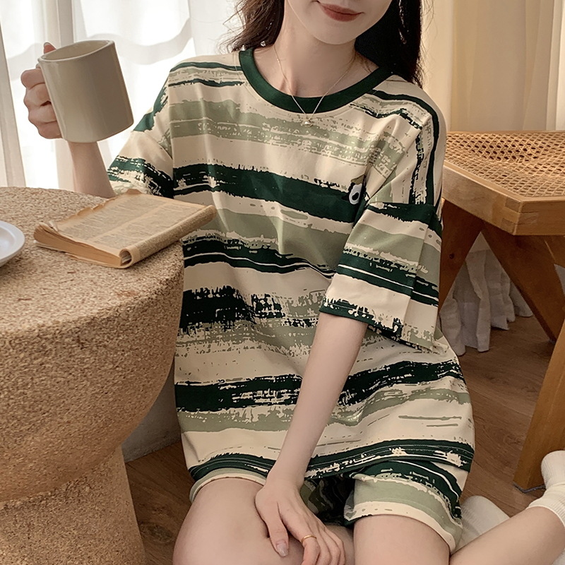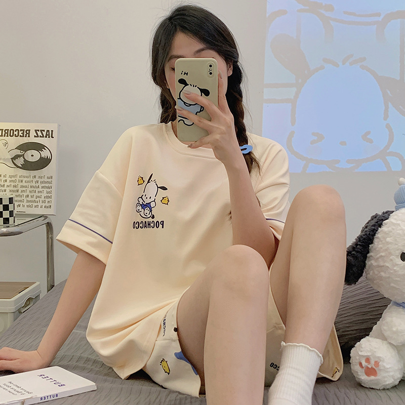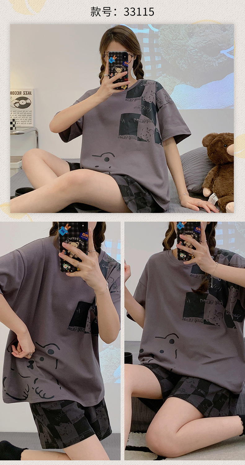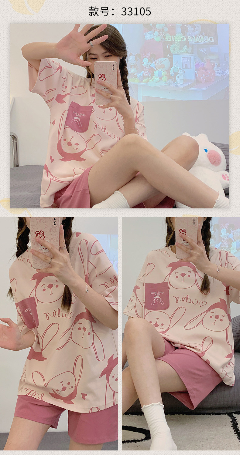 여성용 잠옷 반팔 여름 면세트 한국 스타일 학생복 달콤하고 귀여운 만화풍 루즈핏 큰 사이즈 홈웨어 시원한 느낌스토어 가기