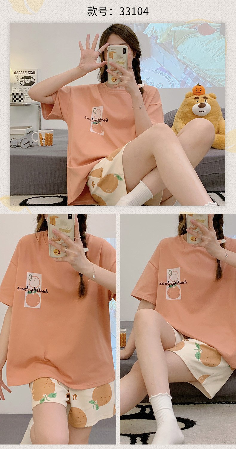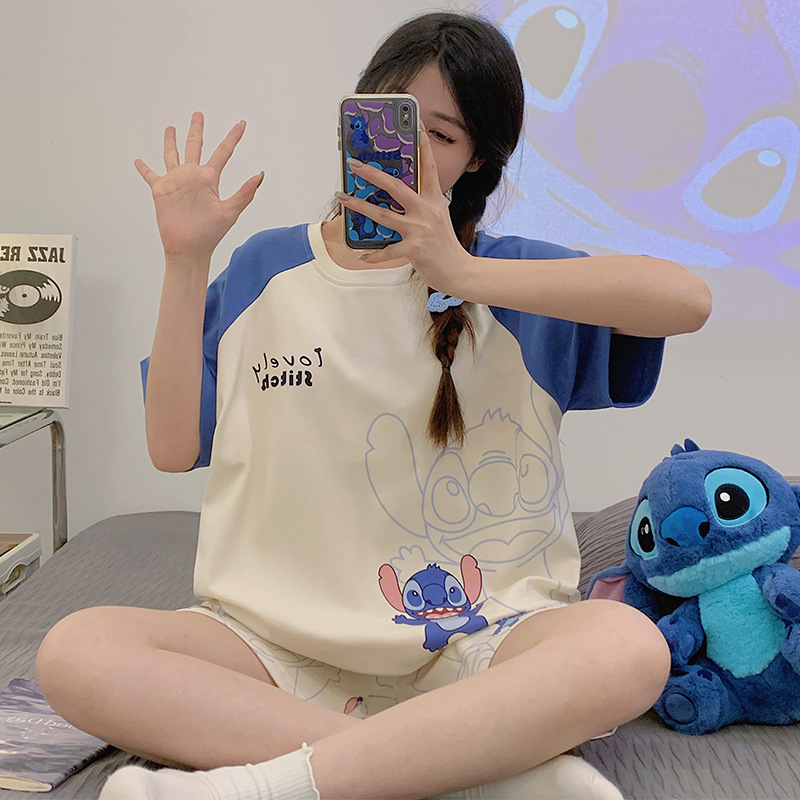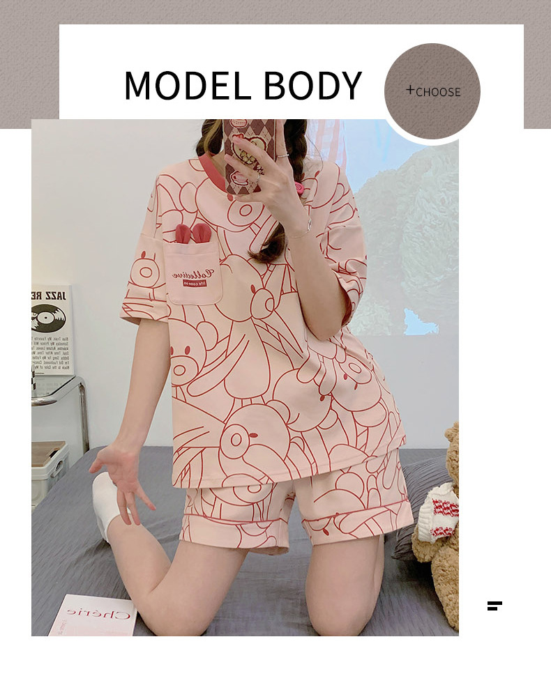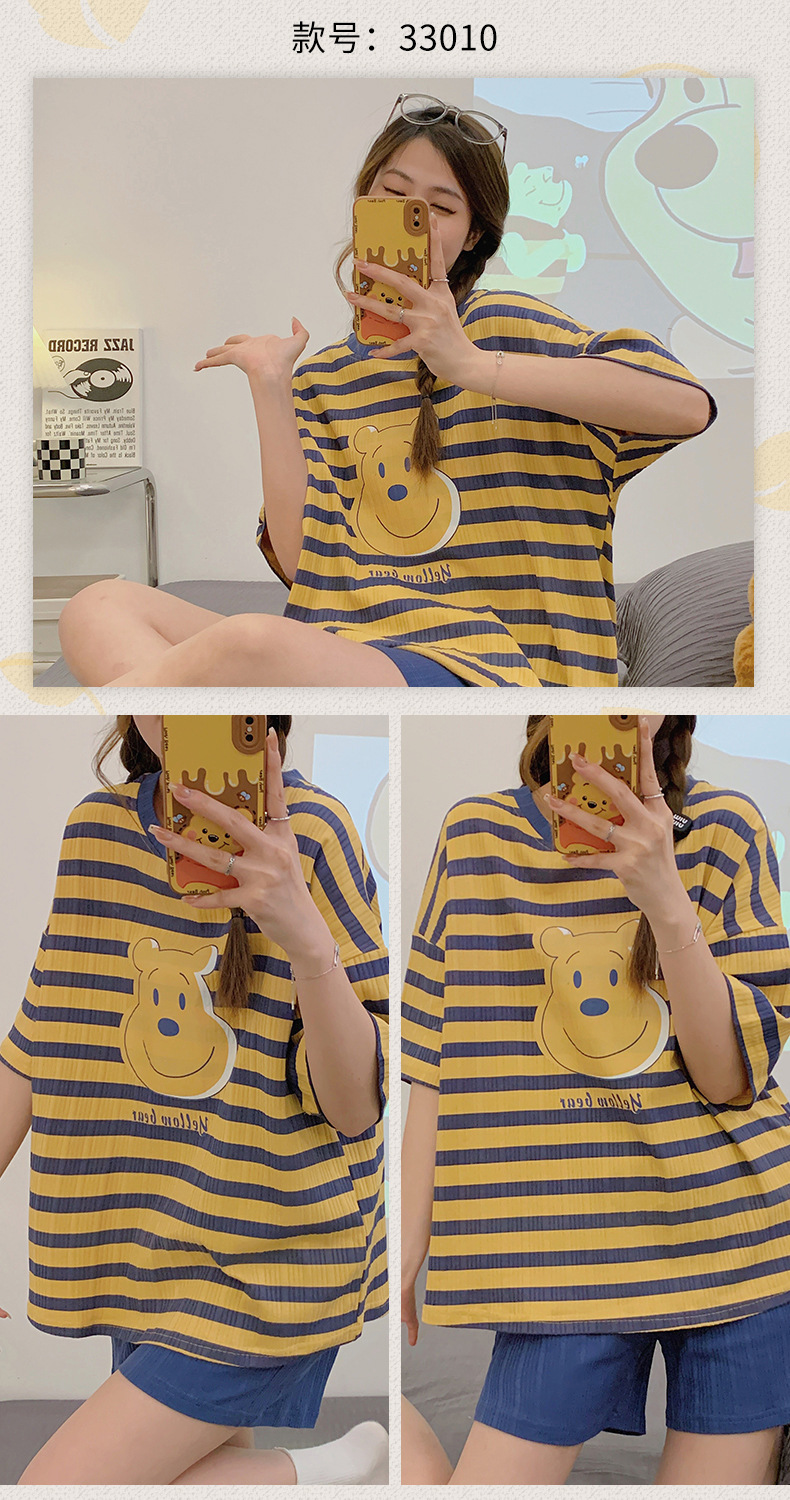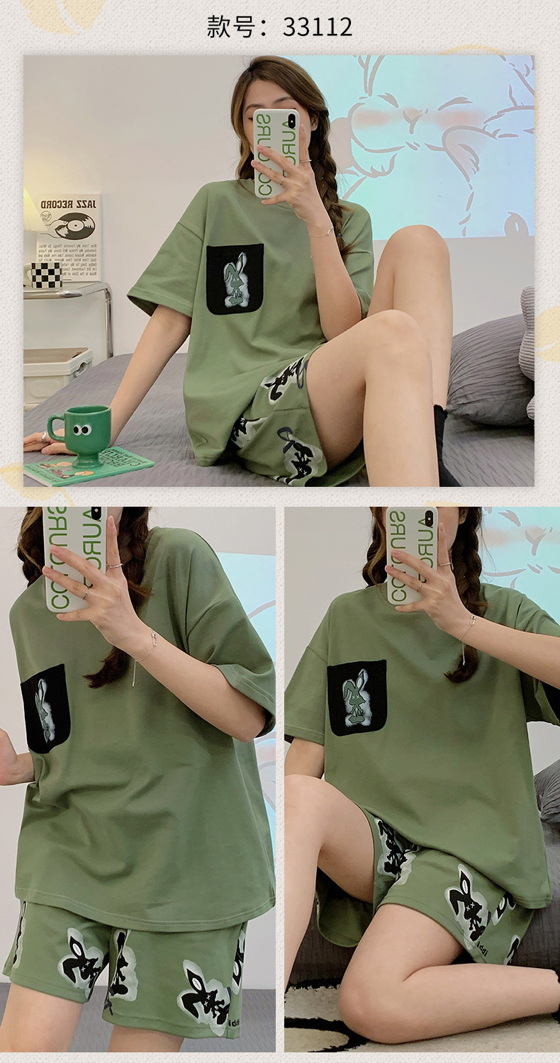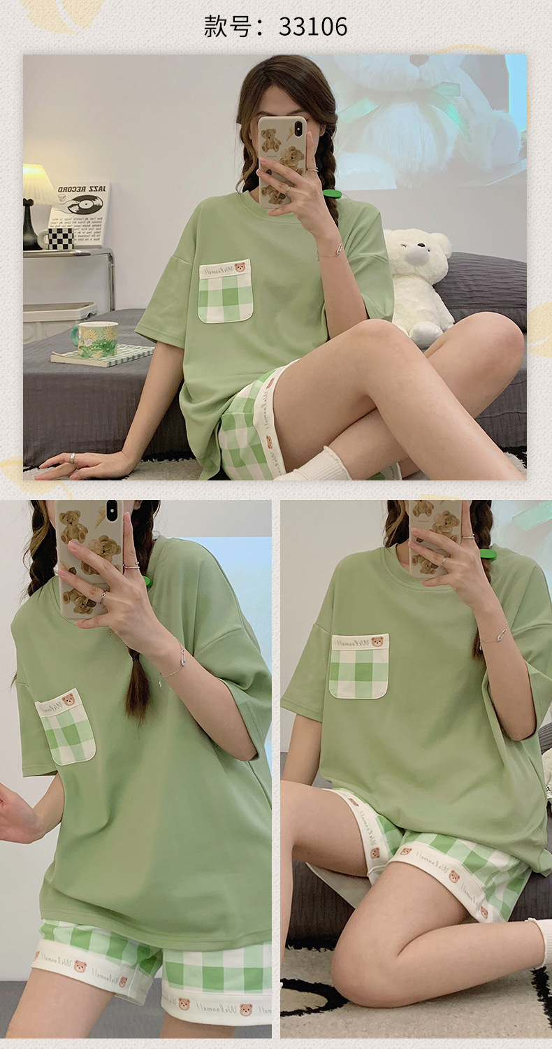 여성용 잠옷 반팔 여름 면세트 한국 스타일 학생복 달콤하고 귀여운 만화풍 루즈핏 큰 사이즈 홈웨어 시원한 느낌스토어 가기