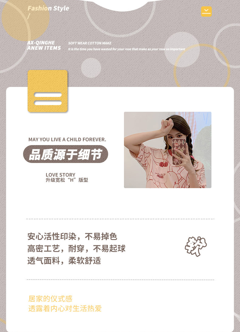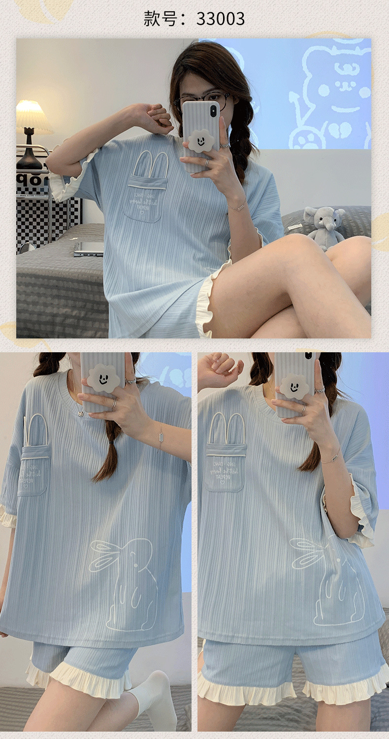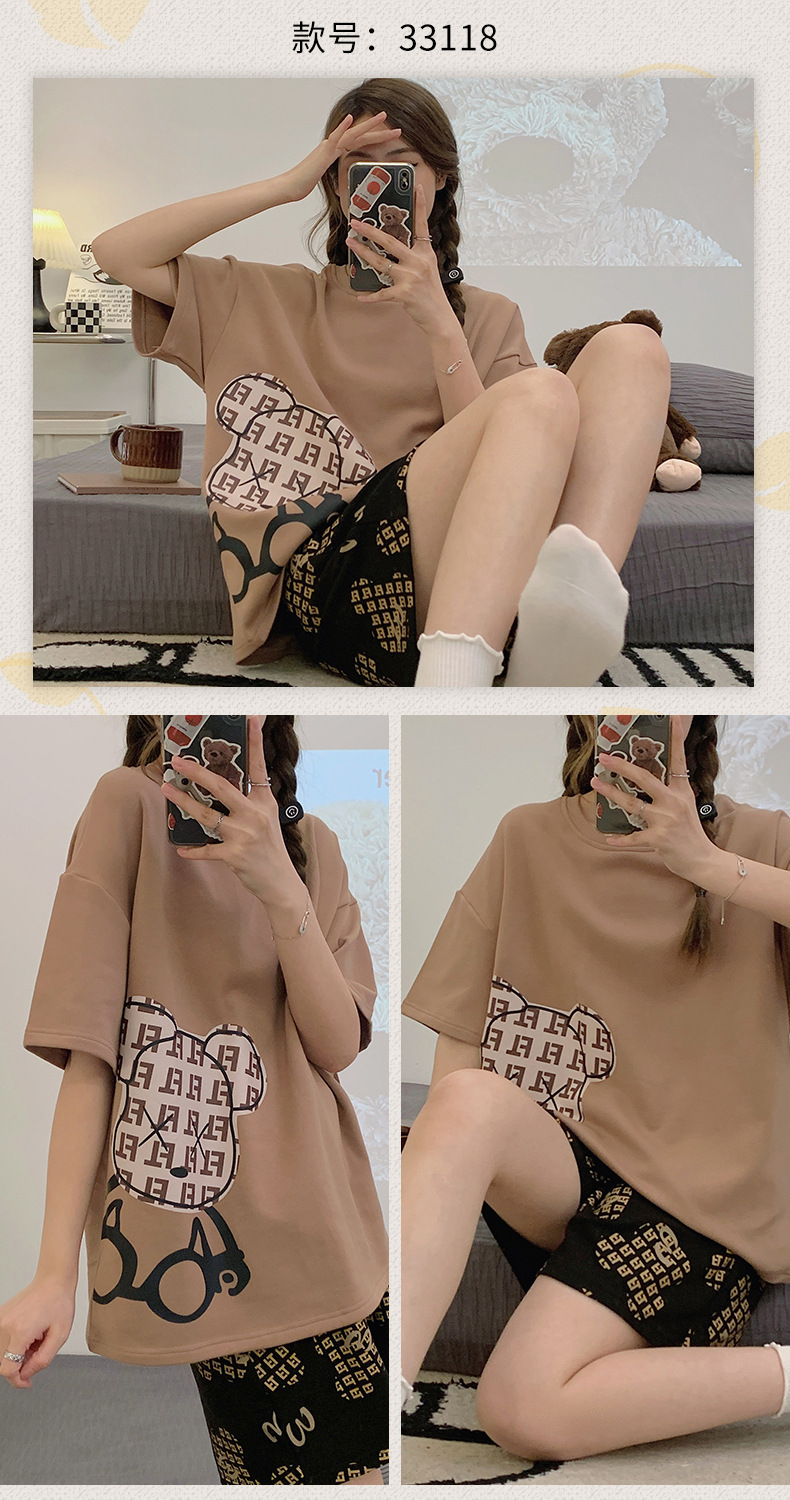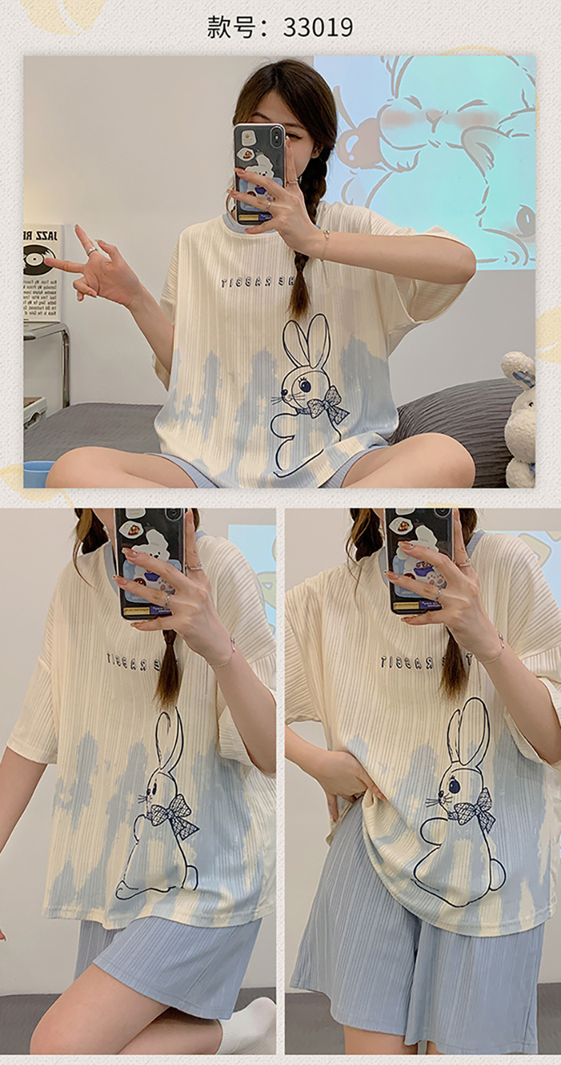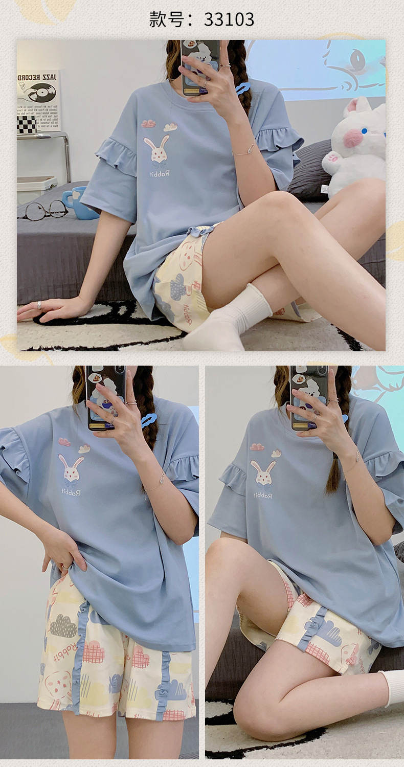 여성용 잠옷 반팔 여름 면세트 한국 스타일 학생복 달콤하고 귀여운 만화풍 루즈핏 큰 사이즈 홈웨어 시원한 느낌스토어 가기
