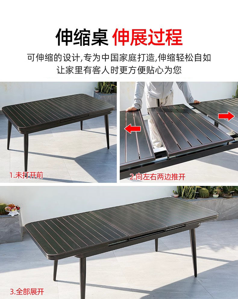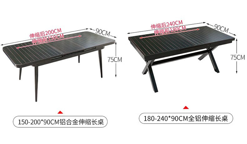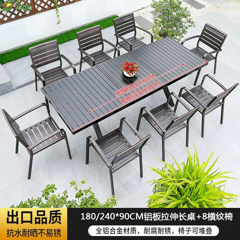 • [수출 품질] 180/240*90cm 스트레치 테이블 + 수평 의자 8 개