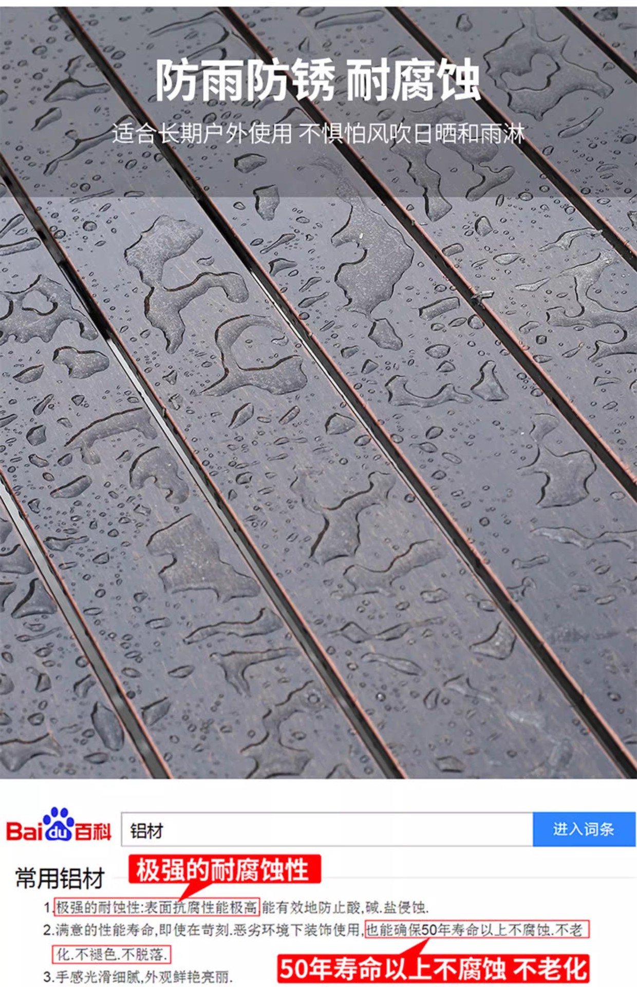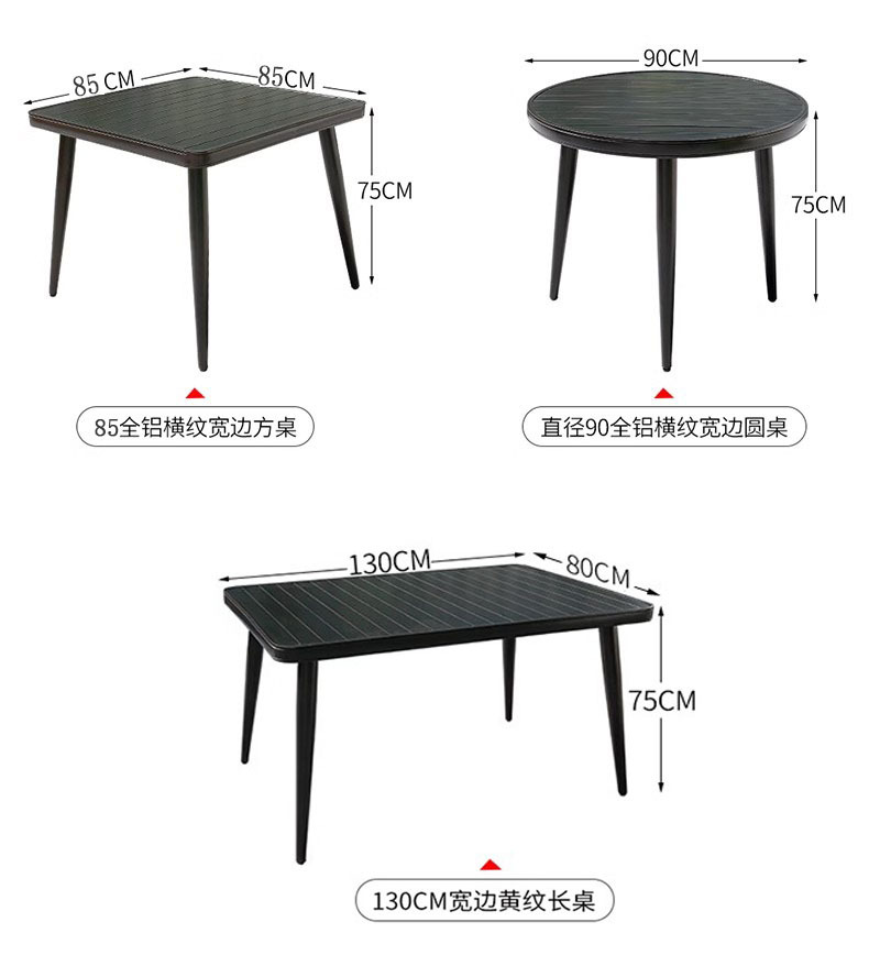 도매 야외 테이블과 의자, 안뜰, 야외 빌라, 야외 발코니, 정원 조합, 전체 알루미늄 합금 방수 및 자외선 차단 식탁