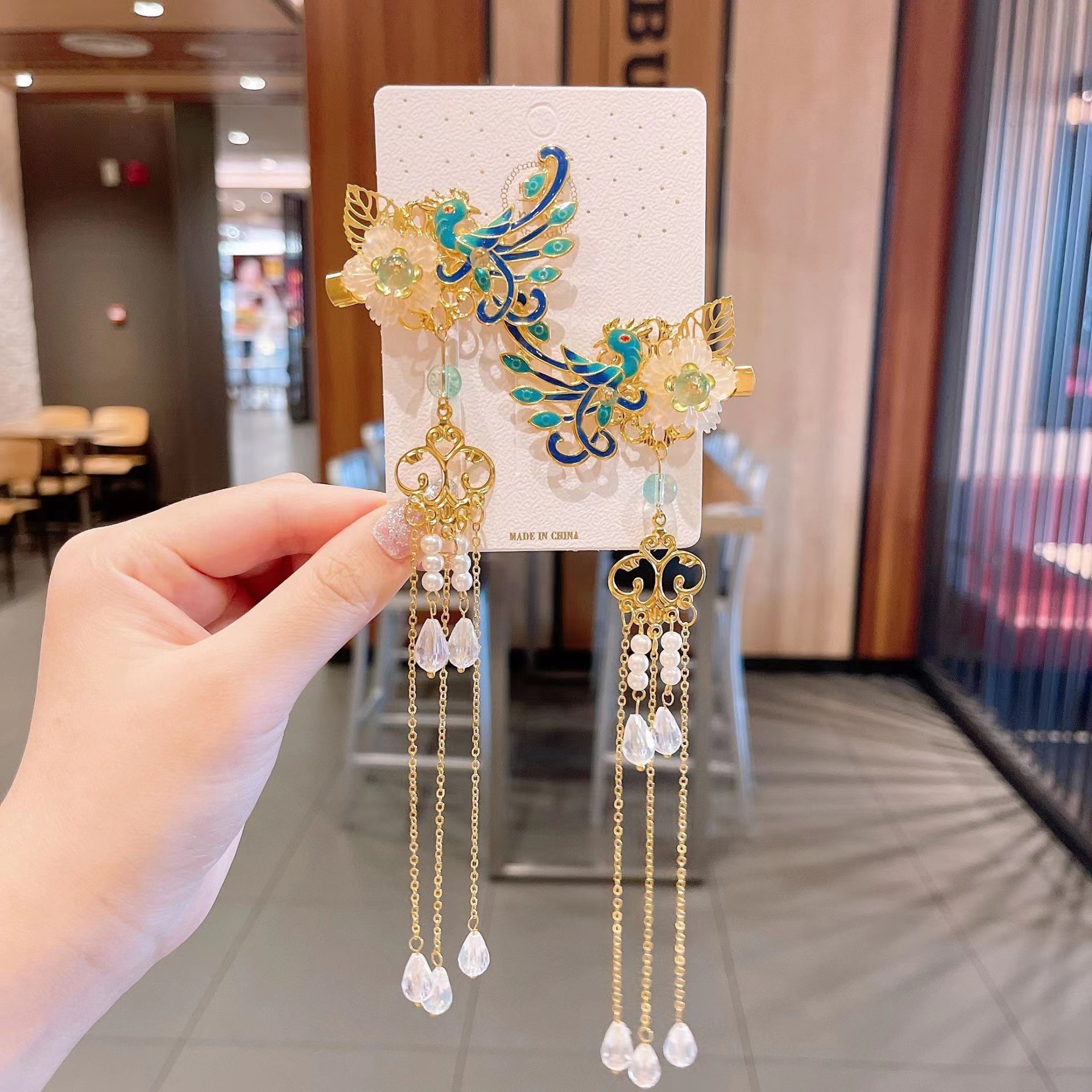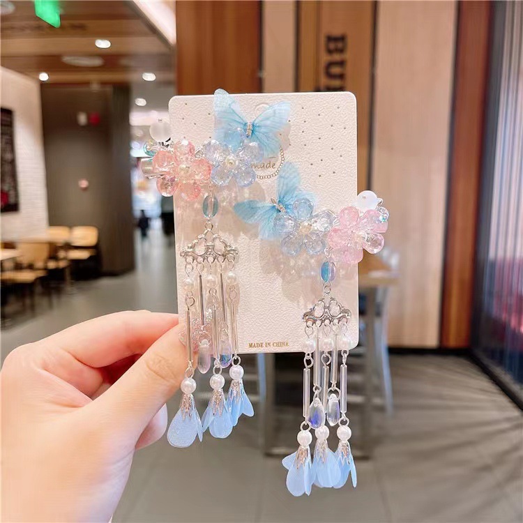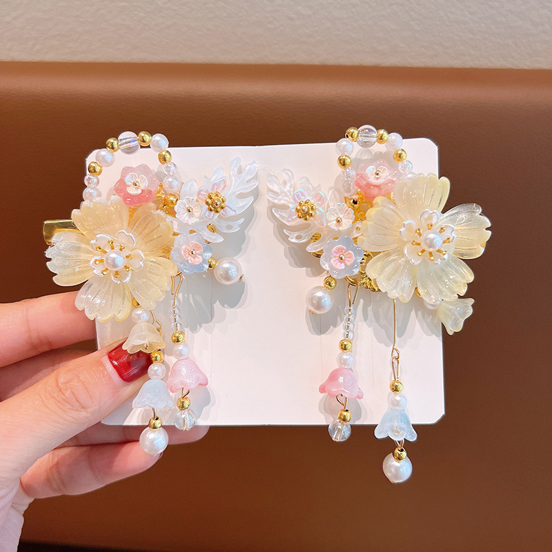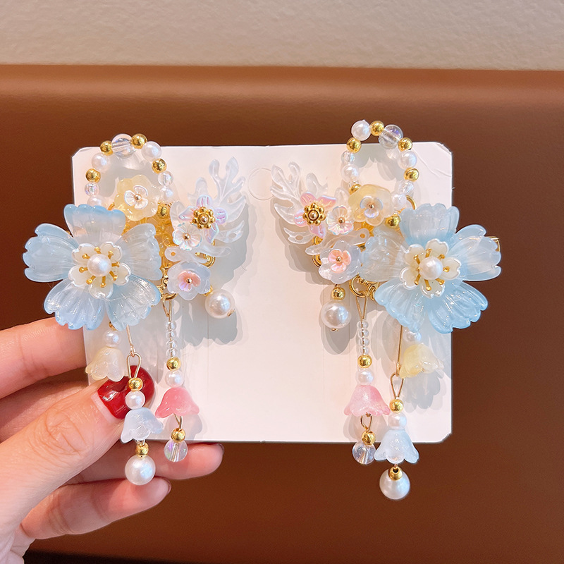 소녀와 어린이를위한 Hanfu 모자 소녀를위한 중국 스타일 걷기 술 머리핀 슈퍼 요정 공주 고대 의상 꽃 머리핀 모자