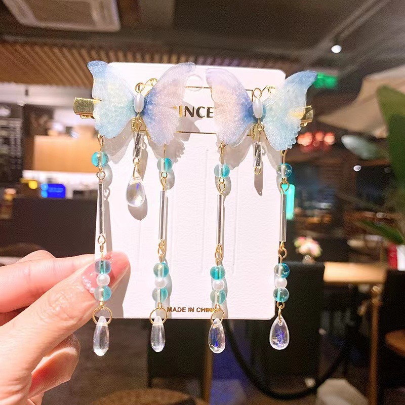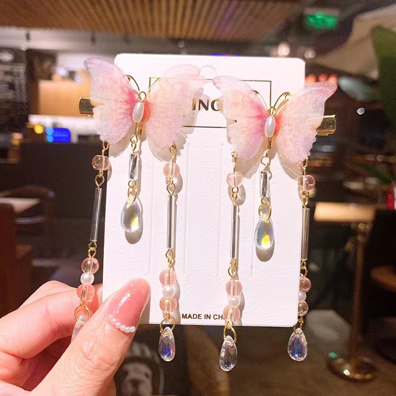 • 448-12 # 복숭아 꽃 나비 머리핀