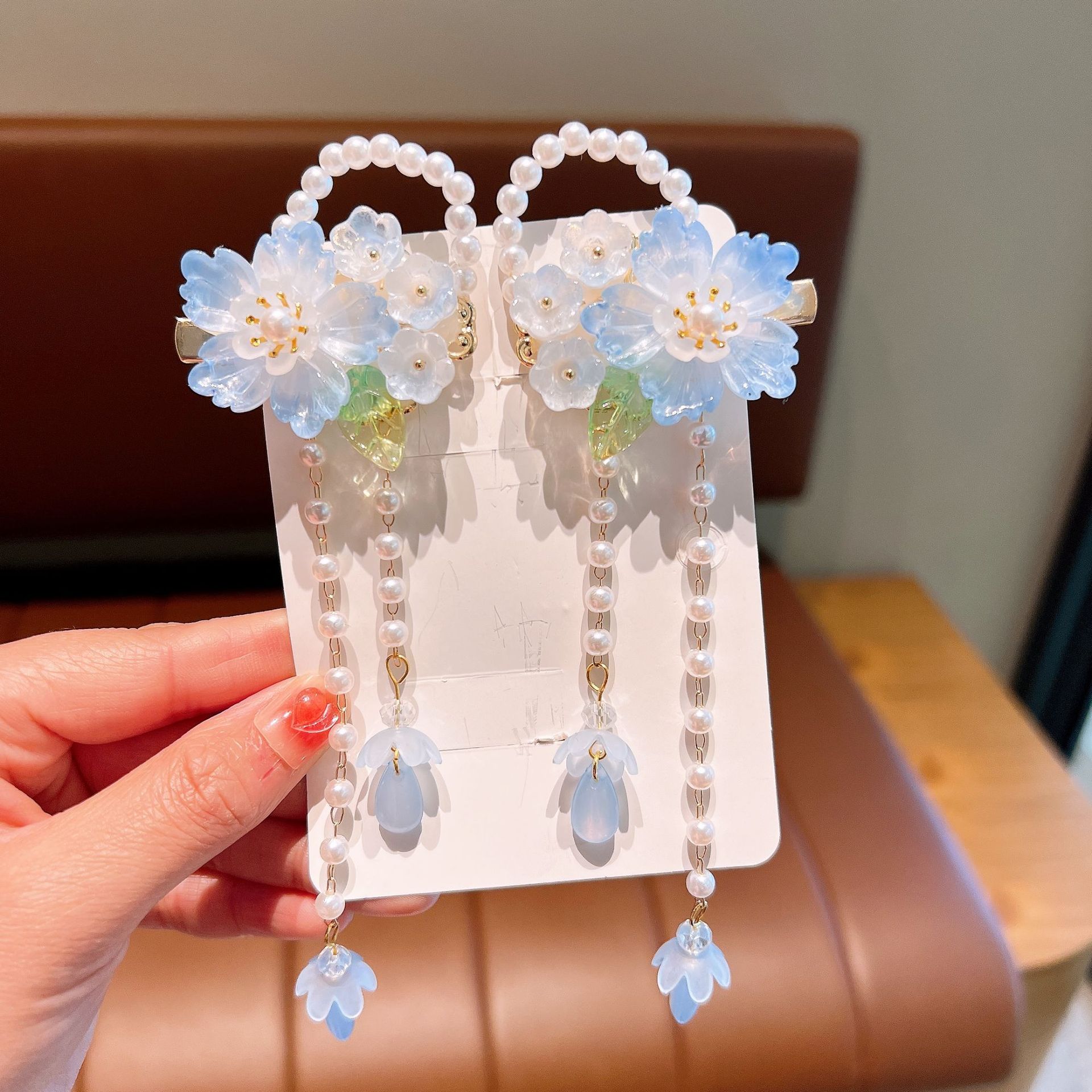 소녀와 어린이를위한 Hanfu 모자 소녀를위한 중국 스타일 걷기 술 머리핀 슈퍼 요정 공주 고대 의상 꽃 머리핀 모자스토어 가기
