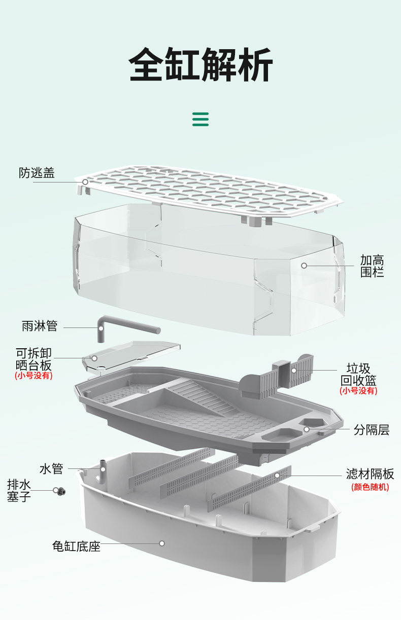 体积:可拆卸防逃龟缸小号(35.5*18*18cm)一个装