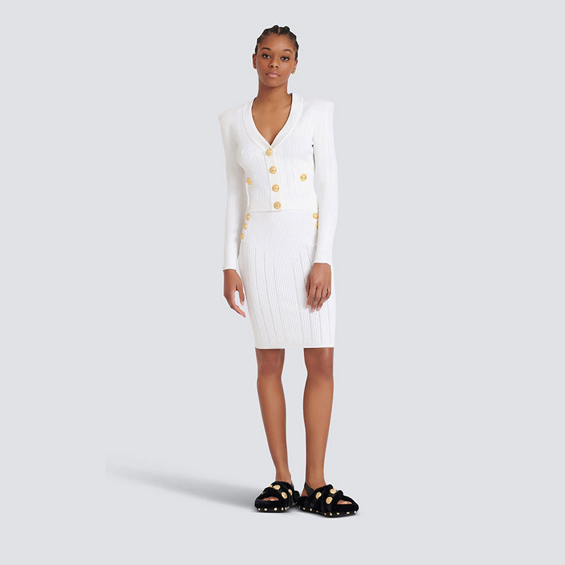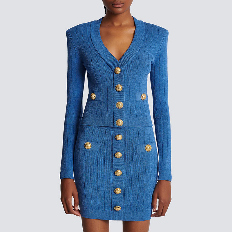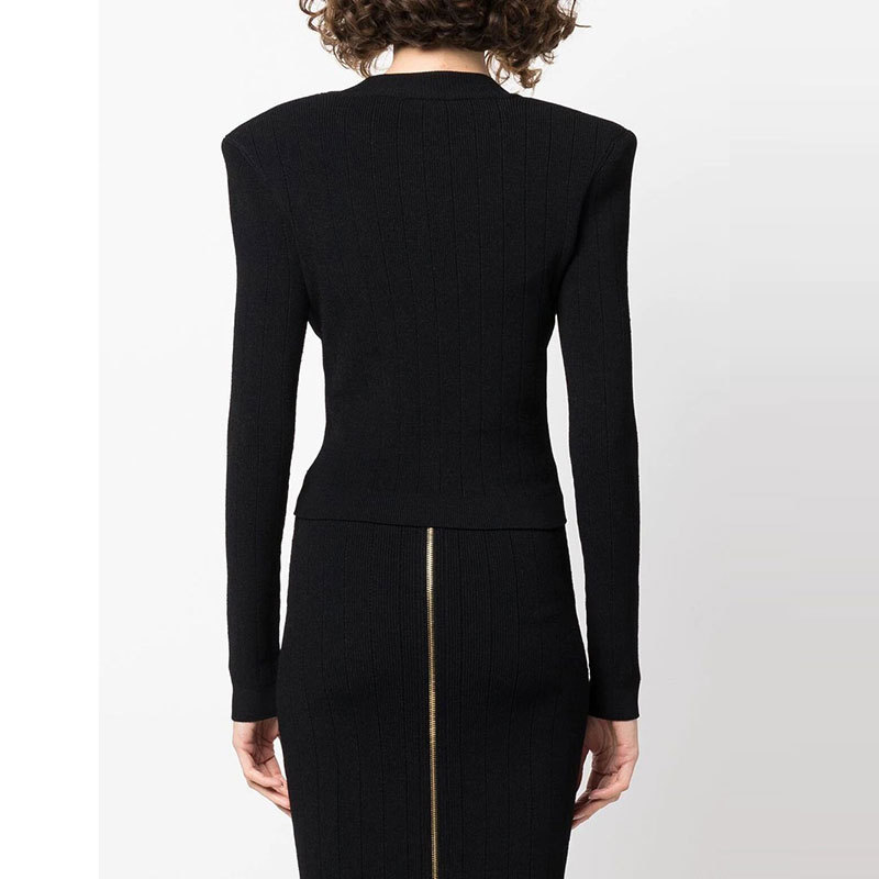 Bajia 중공업 소형 스타일 니트 카디건 쇼트 코트 여성의 새로운 봄 블랙 슬림 핏 쇼트 골드 버튼 탑 트렌디