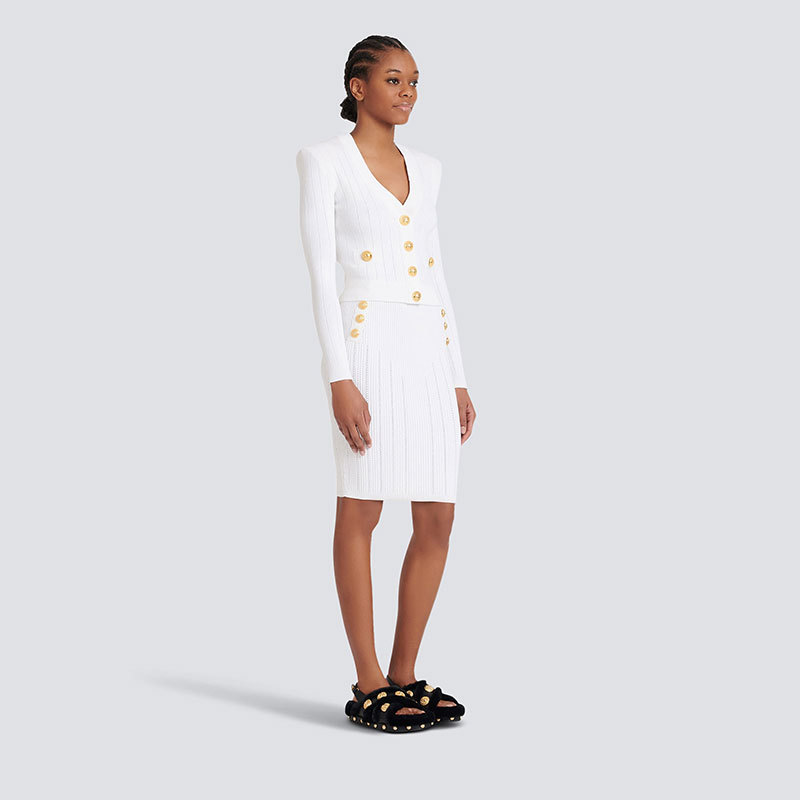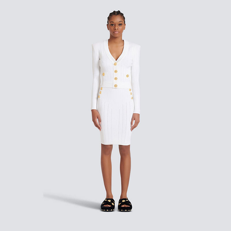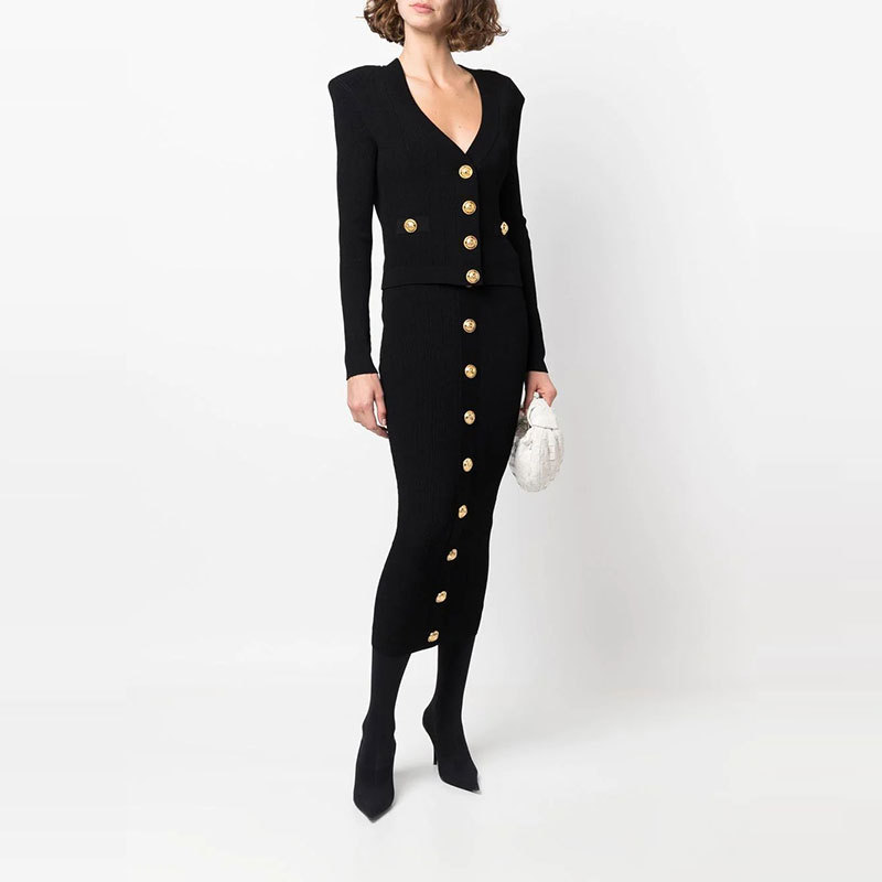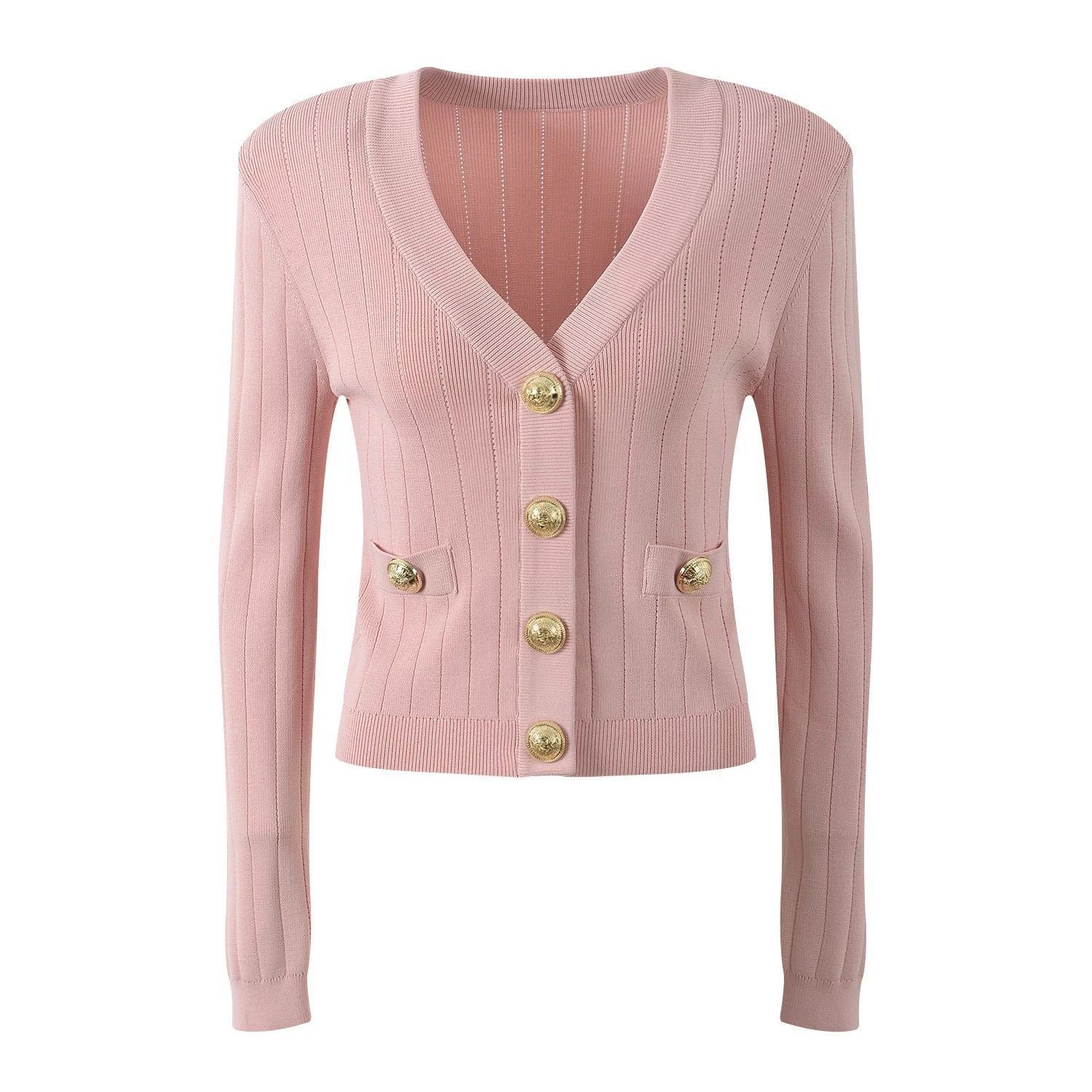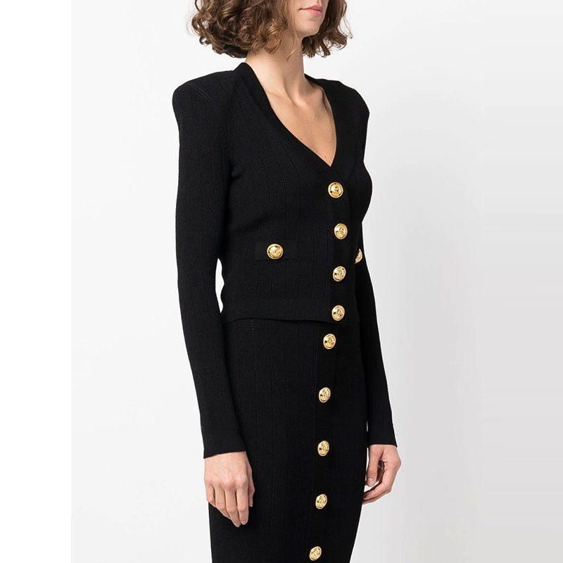 Bajia 중공업 소형 스타일 니트 카디건 쇼트 코트 여성의 새로운 봄 블랙 슬림 핏 쇼트 골드 버튼 탑 트렌디스토어 가기