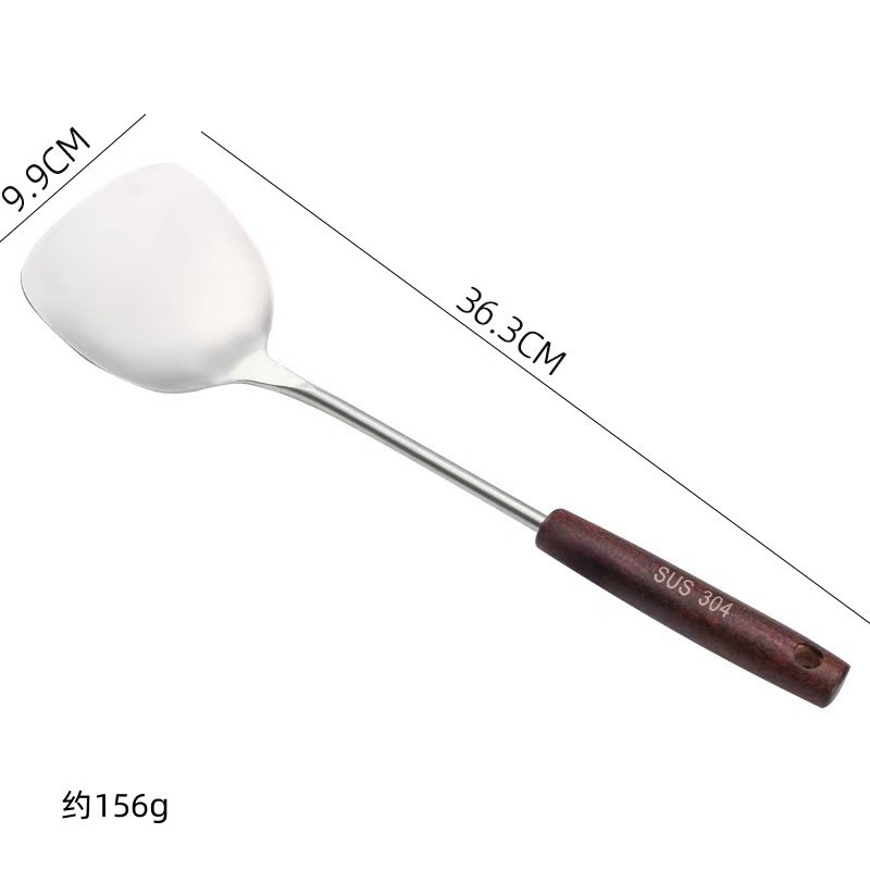 스테인레스 스틸 나무 손잡이 주걱 수프 숟가락 볶음 소쿠리 철 주걱 가정용 볶음 스푼 비 스틱 팬 주방 용품 주걱 세트 도매스토어 가기