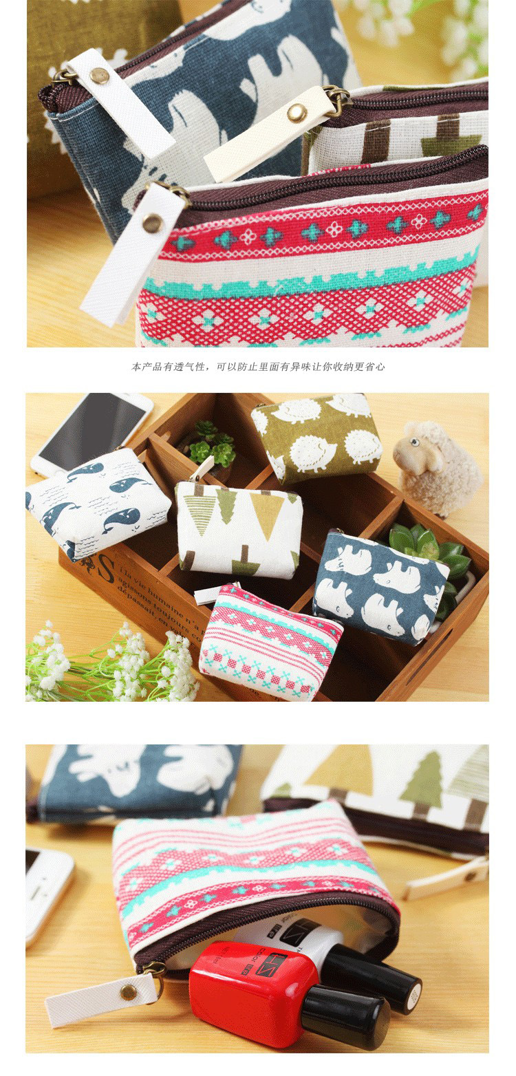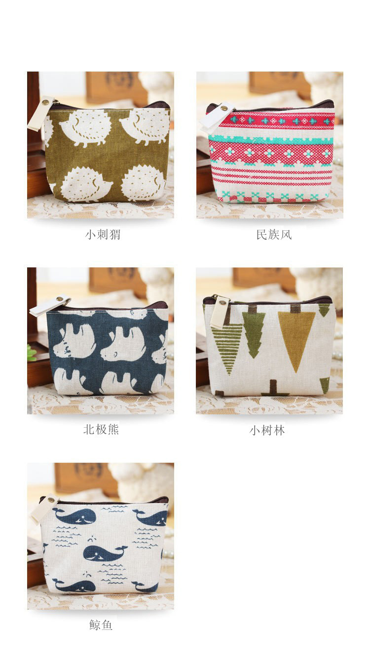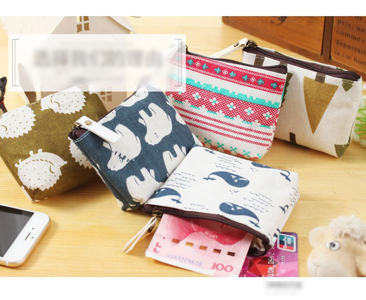 면 및 리넨 지갑 원단 한국 동전 가방 간단한 패션 캔버스 만화 키 귀여운 저장 가방 동전 지갑스토어 가기