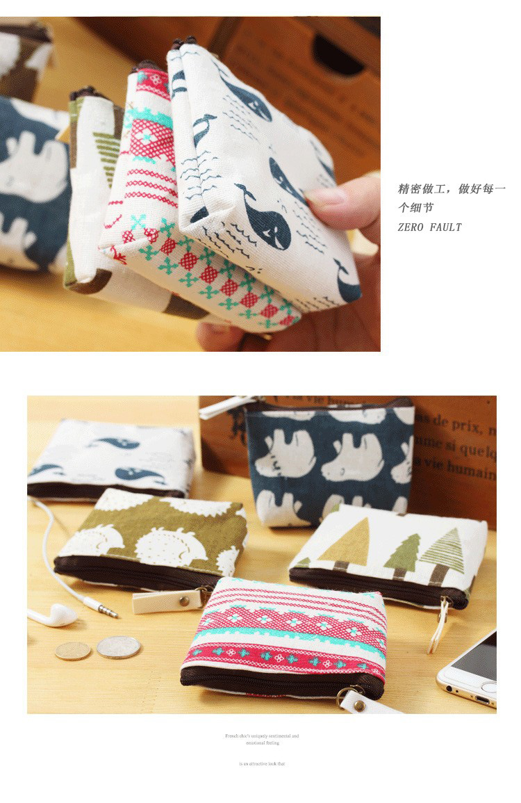 면 및 리넨 지갑 원단 한국 동전 가방 간단한 패션 캔버스 만화 키 귀여운 저장 가방 동전 지갑