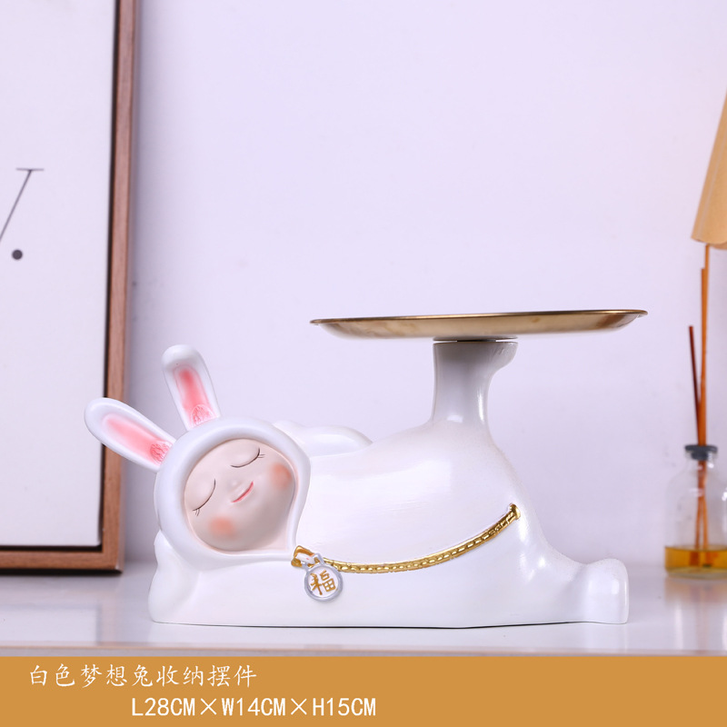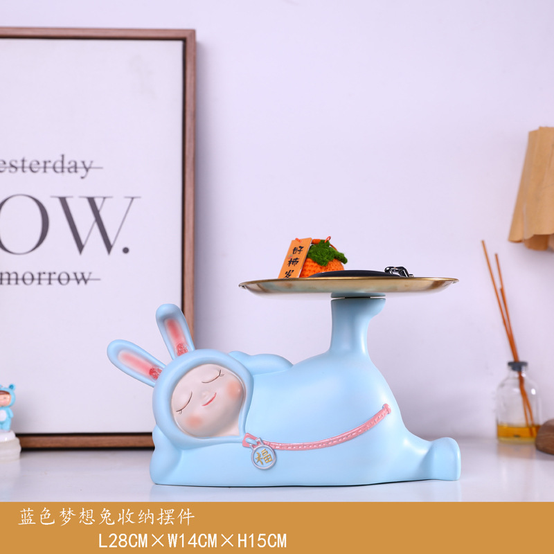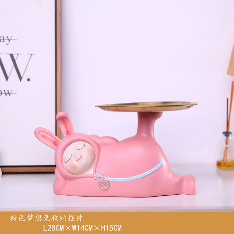 귀여운 꿈 토끼 보관 키 트레이 수지 장식품 사무실 데스크탑 홈 입구 집들이 새로운 가정 장식