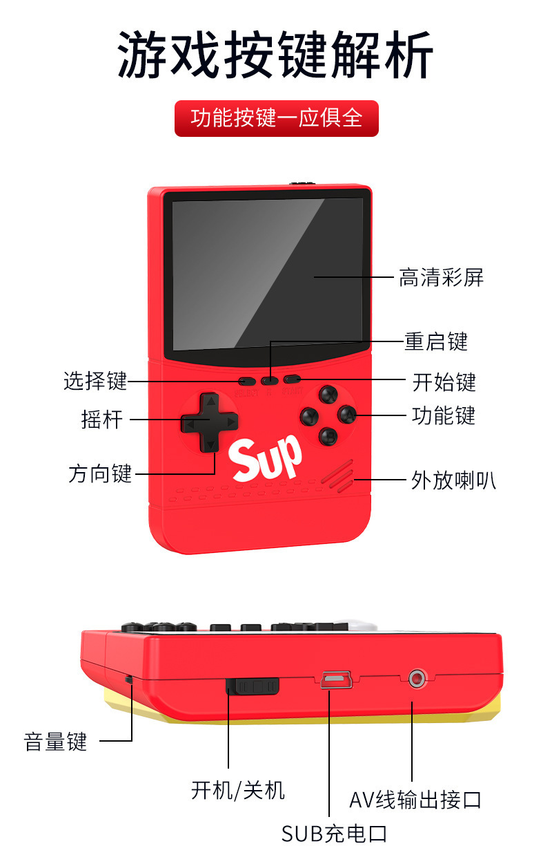 휴대용 게임기 섭 두 배 향수 레트로 클래식 FC 내장 500 하나의 휴대용 미니 어린이 대외 무역