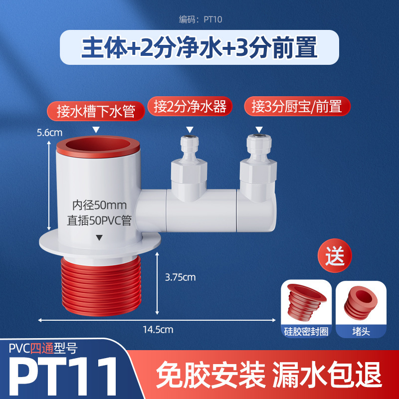 주방 수평 벽 배수관 티 조인트 싱크 야채 분지 정수기 배수관 프리 필터스토어 가기
