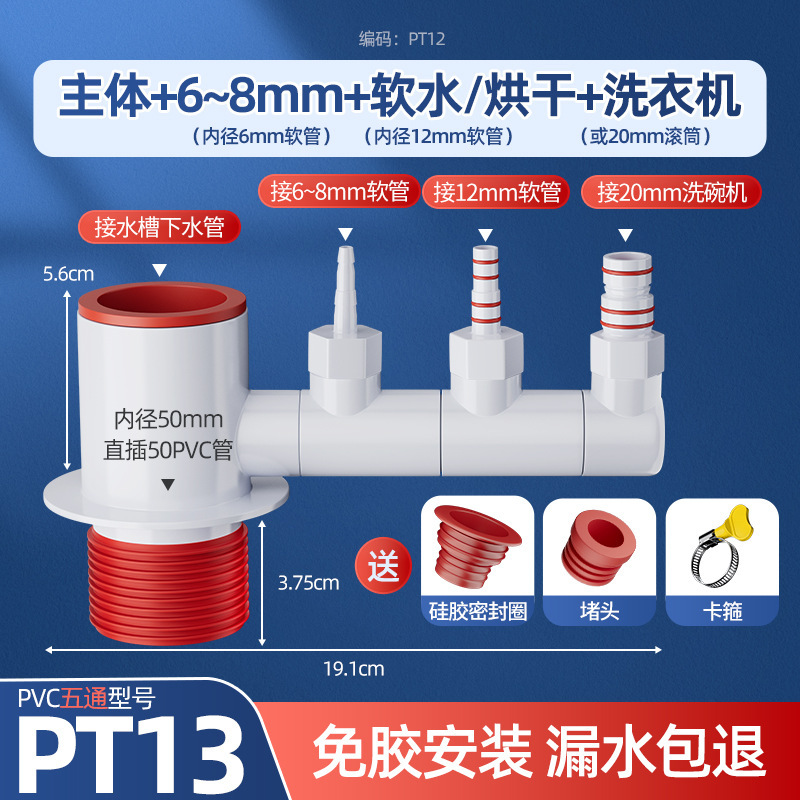 • [두꺼운 탈취제] 5 방향 본체 + 6mm + 12mm 연수 + 20mm 식기세척기
